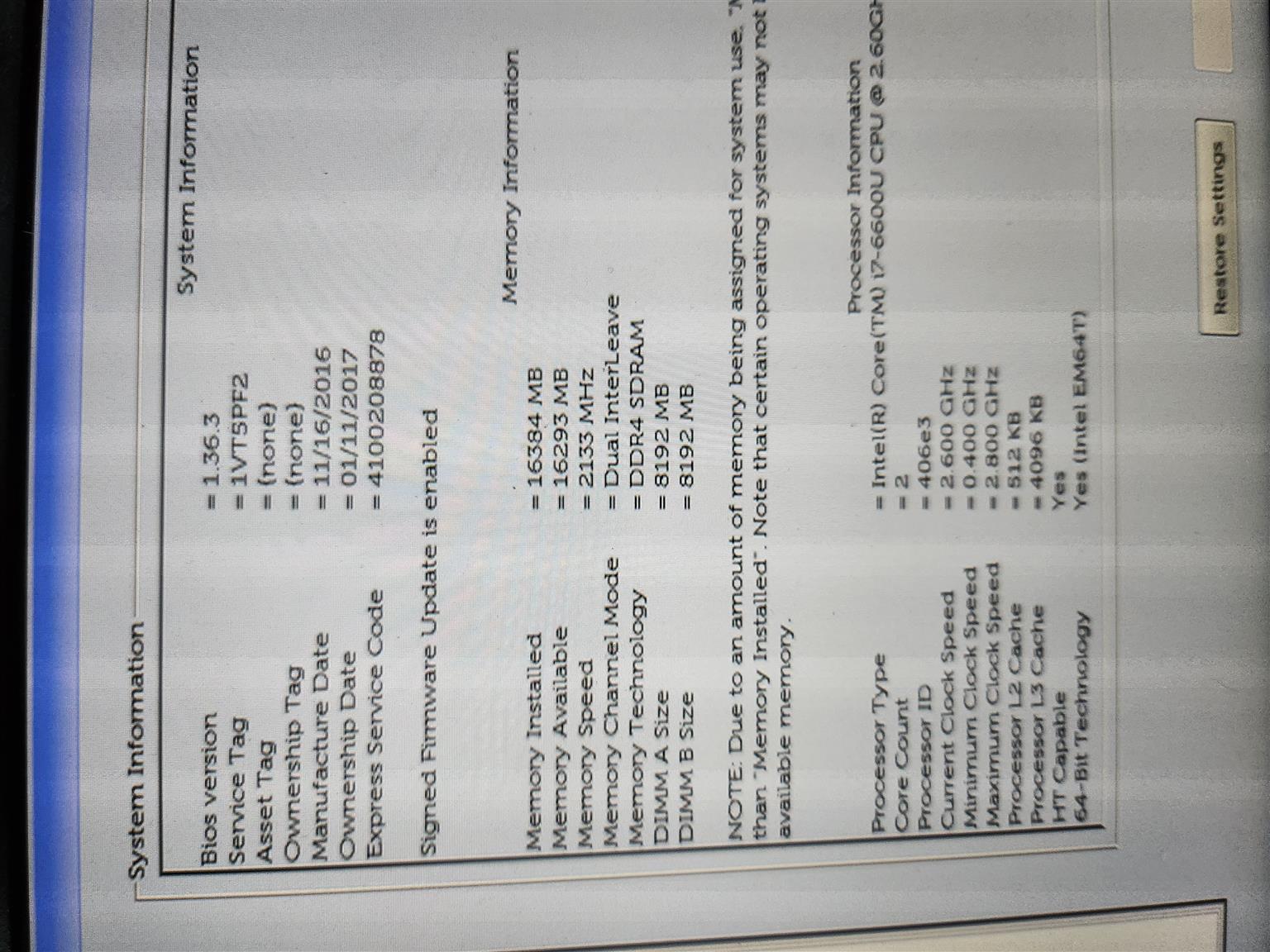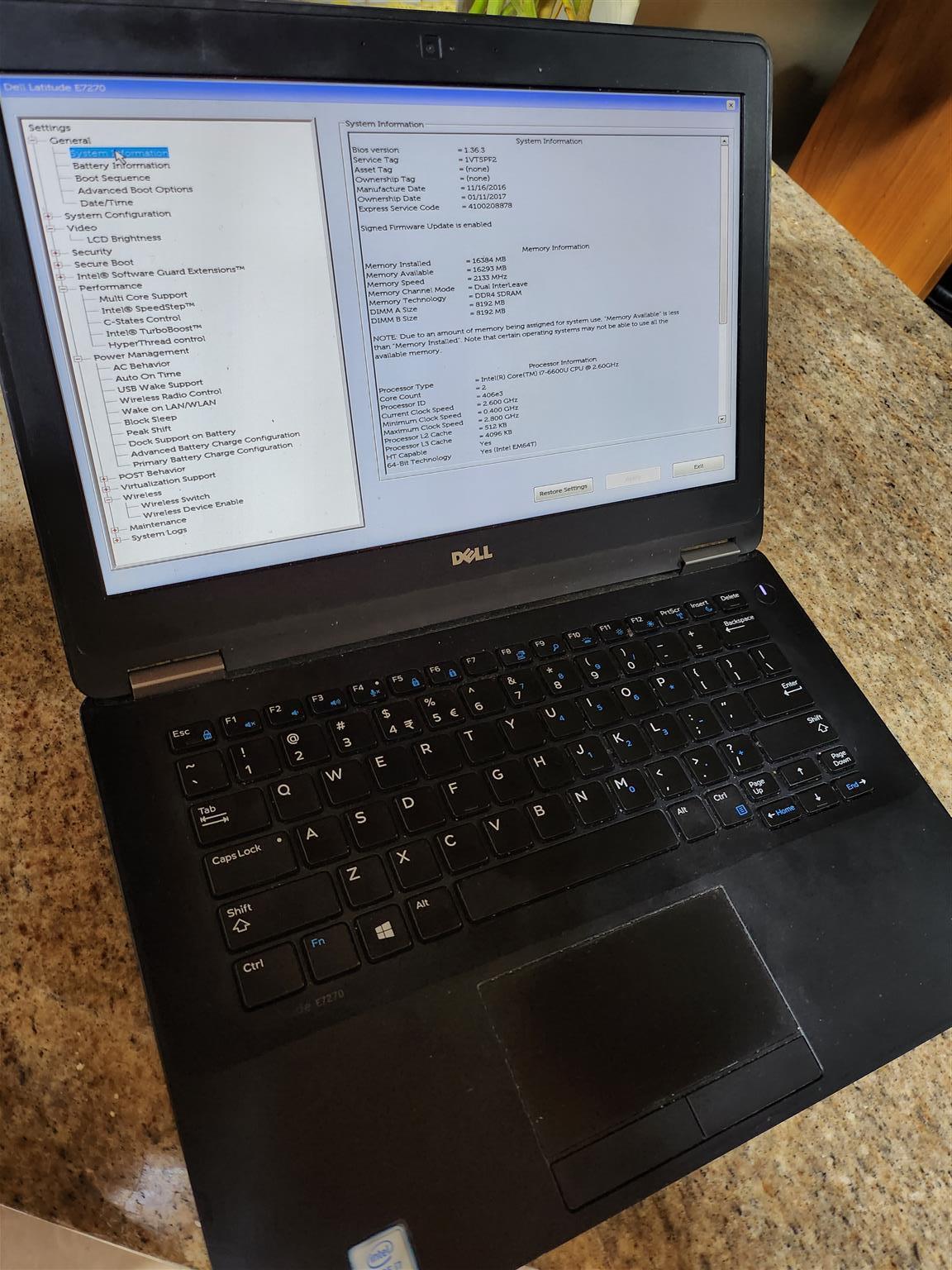 Dell Latitude Laptop e7270, colour: black, comes with 16gb Ram, 256gb SSD hard drive, battery recently replaced, Windows 10 pro, Intel HD graphics inboard, charger and laptop bag included. Laptop in good working order.