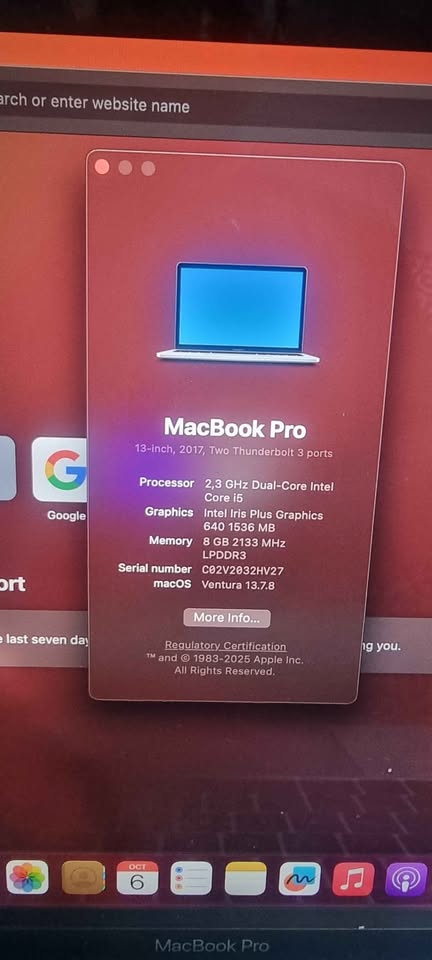 MacBook Pro 2017 256gb ssd i5 processor 8GB RAM Product code - es 💵 Price - R5,999 ✅ Condition - Good ☎️ 0️⃣6️⃣4️⃣ 5️⃣1️⃣0️⃣ 9️⃣9️⃣0️⃣3️⃣ 🚚 Unit can be collected from Durban. 🌐 Based in and around Durban *Please like and follow our page to stay informed on our daily deals* *Also ask us how we can easily assist you with selling your items*