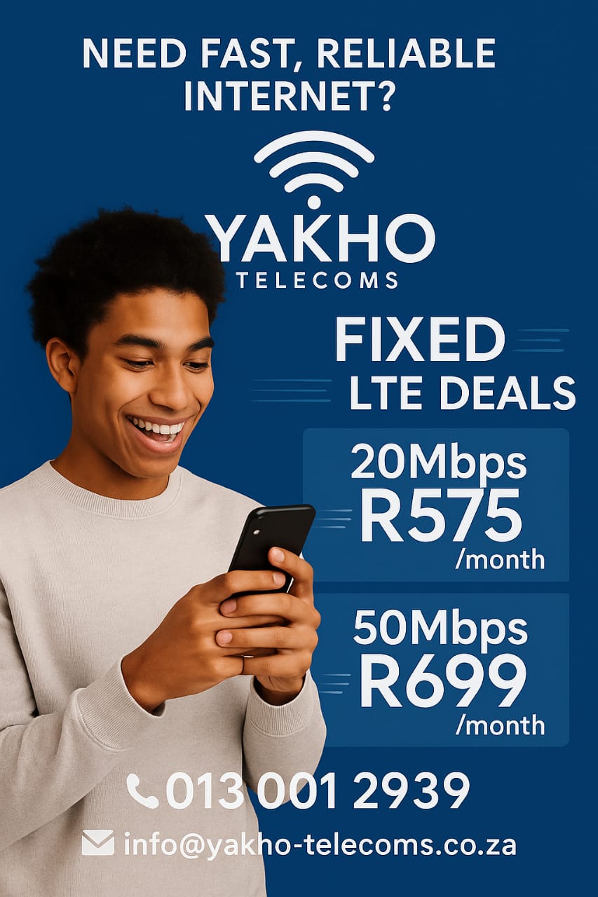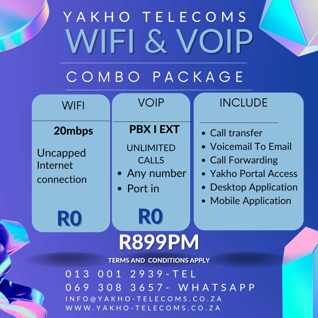 We have affordable packages of wifi starting from R575pm and packages of VoIP line starting from R69pmCity and Suburb - Kwamhlanga