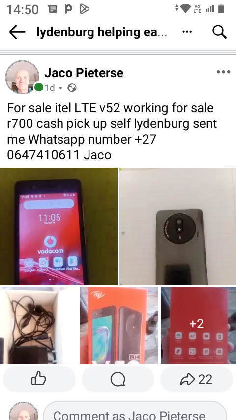 For sale itel LTE v52 r750 cash pick up self lydenburg sent me Whatsapp 0647410611view more or call me r750 cash no pay af plz