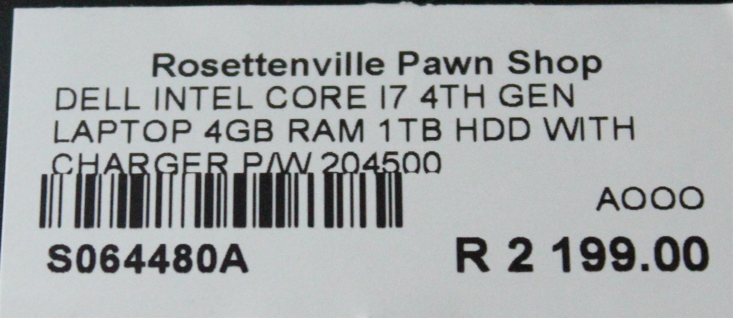 DELL INTEL CORE I7 4TH GEN LAPTOP 4GB RAM 1TB HDD W/CHARGER P/W 204500