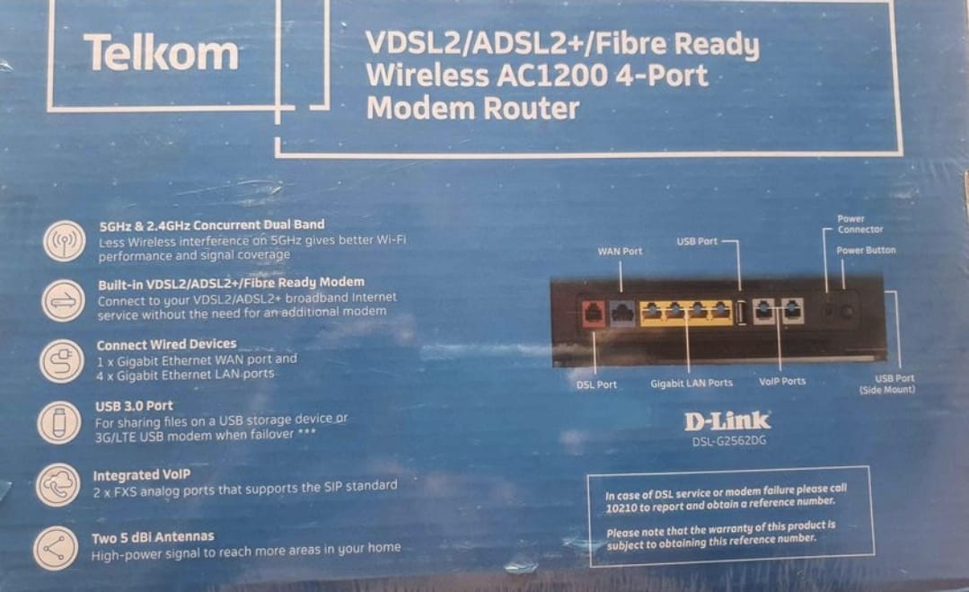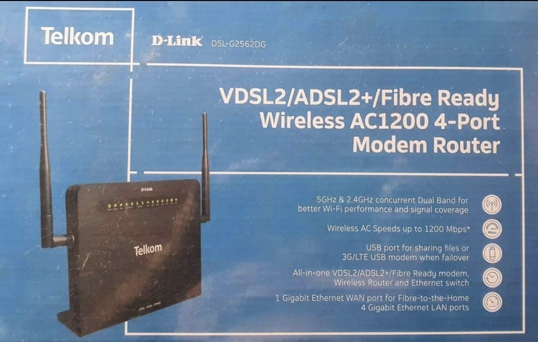 Telkom VDSL2/ADSL2+/Fibre Ready Wireless AC1200 4- Port Modem Router. More details: