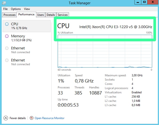 - Intel(R) Xeon(R) E301220 v5 @ 3.00GHz CPU