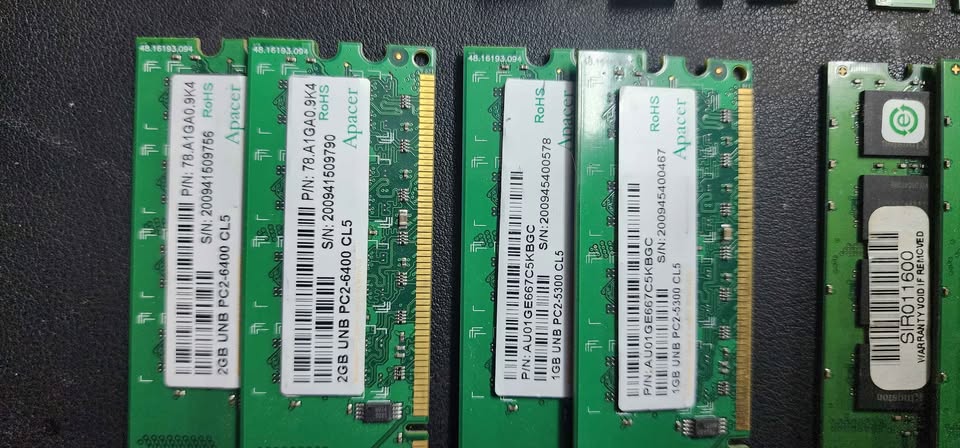 Various Sticks of DDR2 Ram. 2x Apacer 2Gb 2x Apacer 1Gb 2x Kingston 512Mb 3x Samsung 1Gb 1x Dynet 2Gb 1x Kingmax 1Gb R500 or nearest cash offer