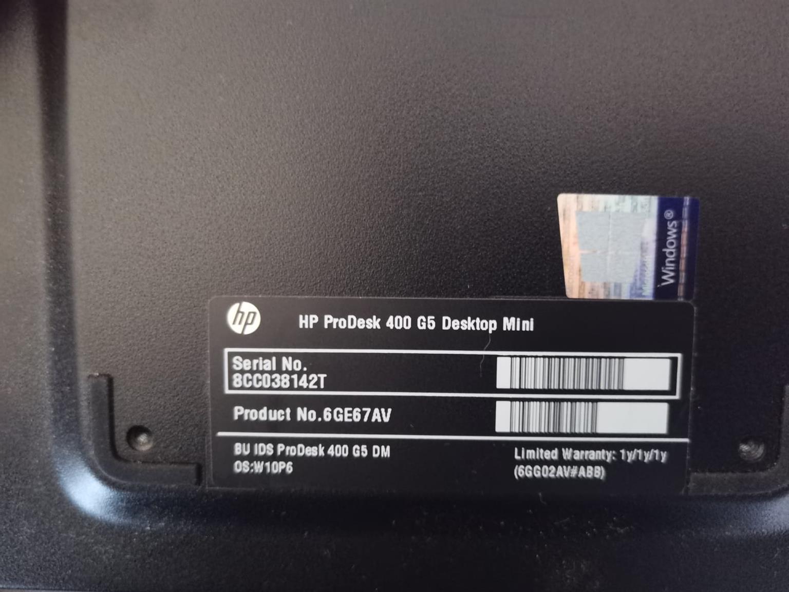 Hp prodesk 400 G5 desktop mini. More details: