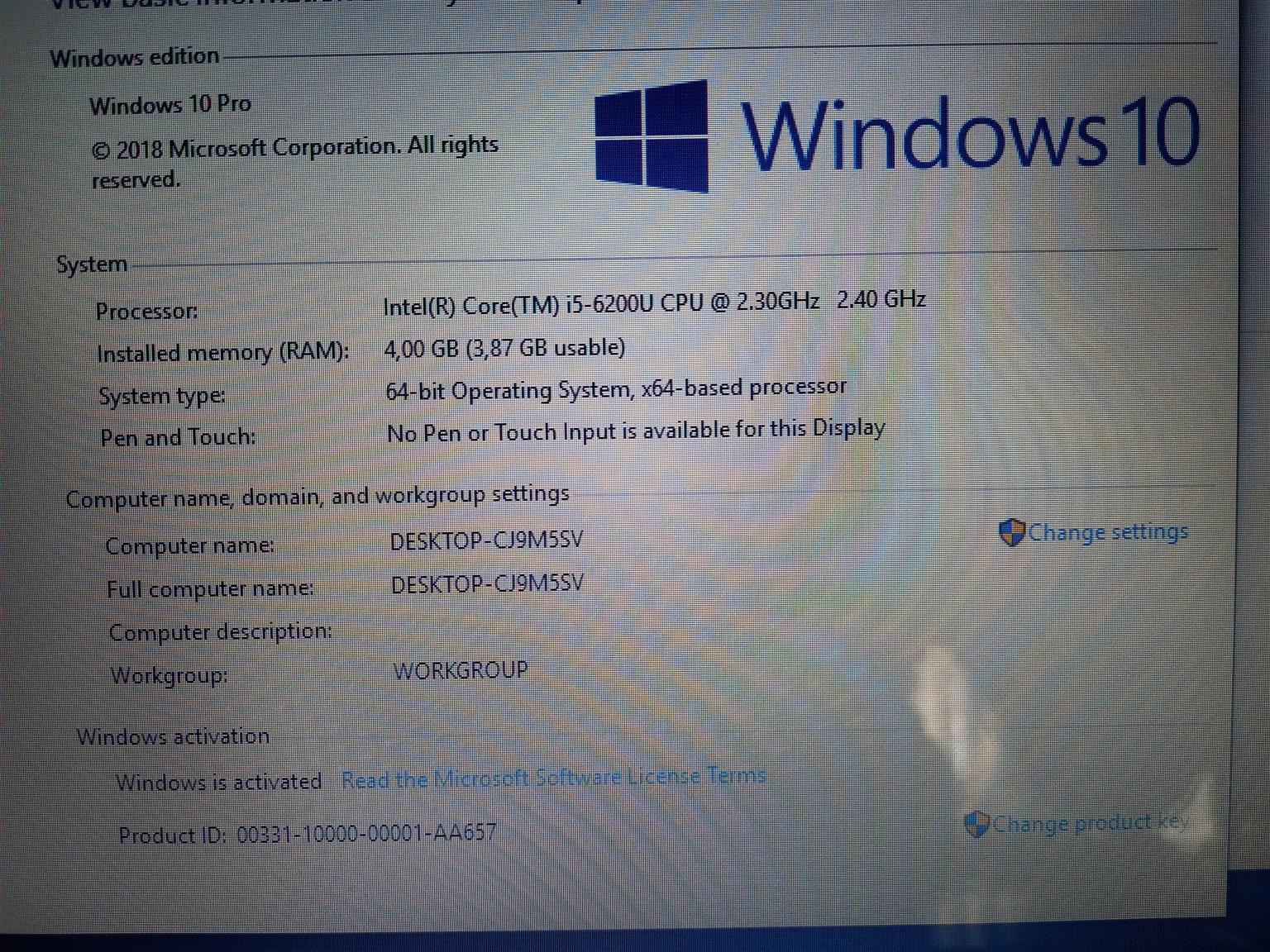 CPU -Core i5-6200U 2.30GHz 2.40GHz 4x (CPUs)