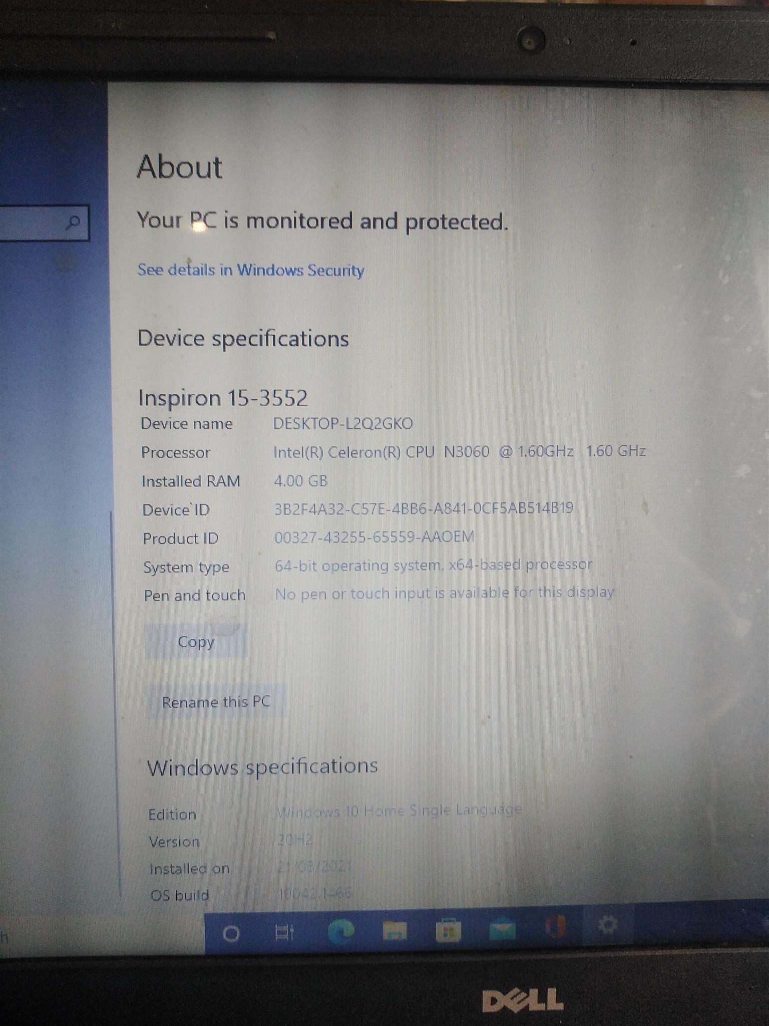 Dell Laptop500GB hard drive4GB RAMDVD writer driveUSB portsHDMI portSD card readerNo charger included