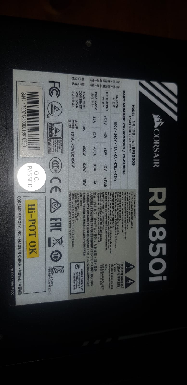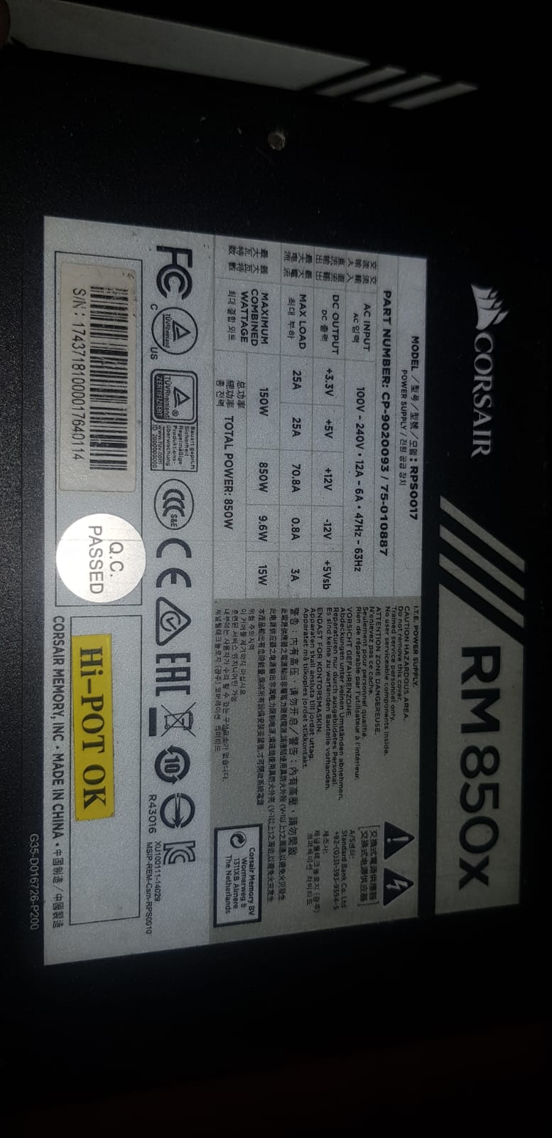 1 X CORSAIR RM850x R700
