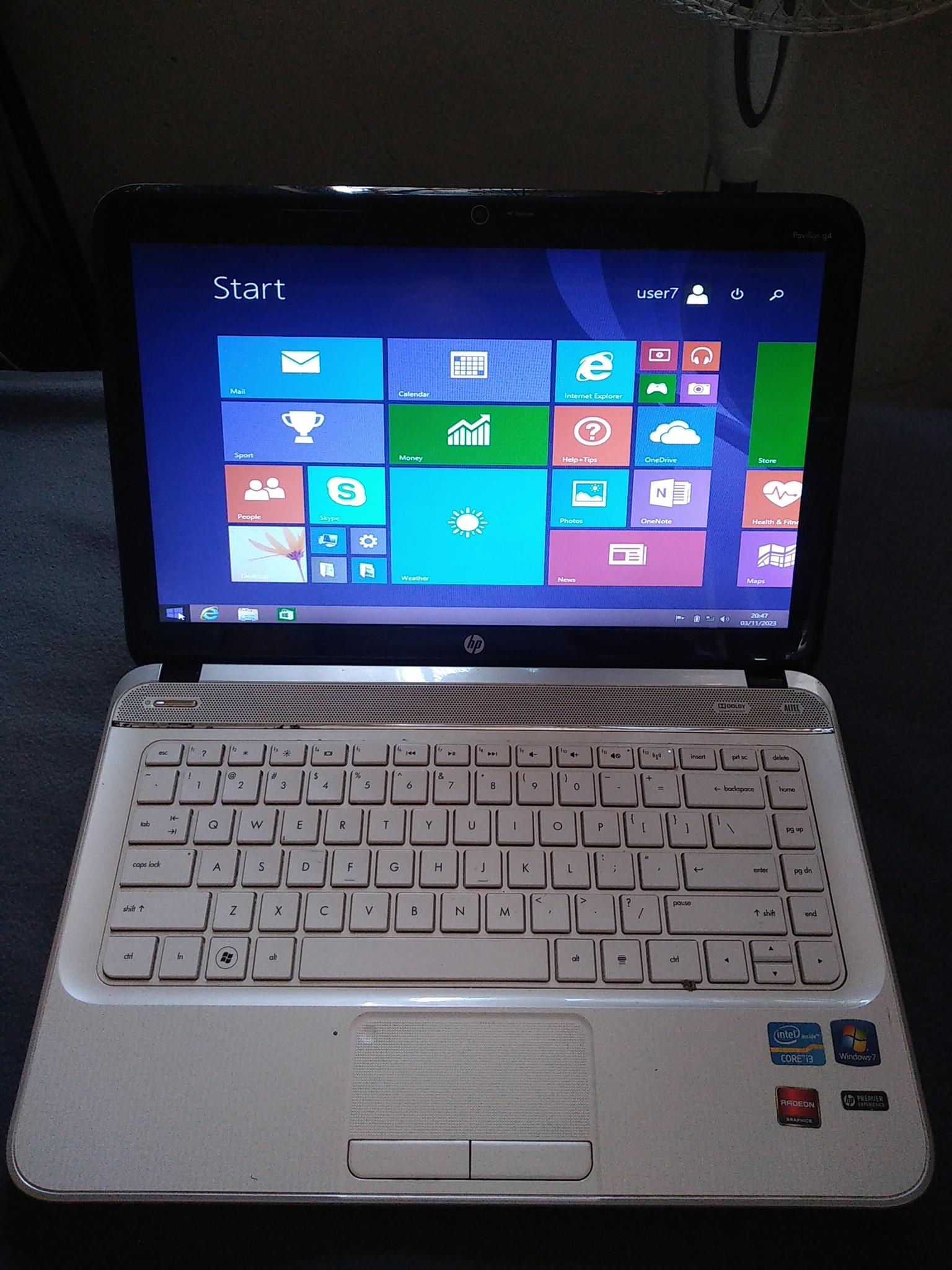 Hp i3 laptop with 500gb hard drive and 4gb ram, Webcam,Radeon graphics, battery good lasts 3 hrs, window 8, has a charger
