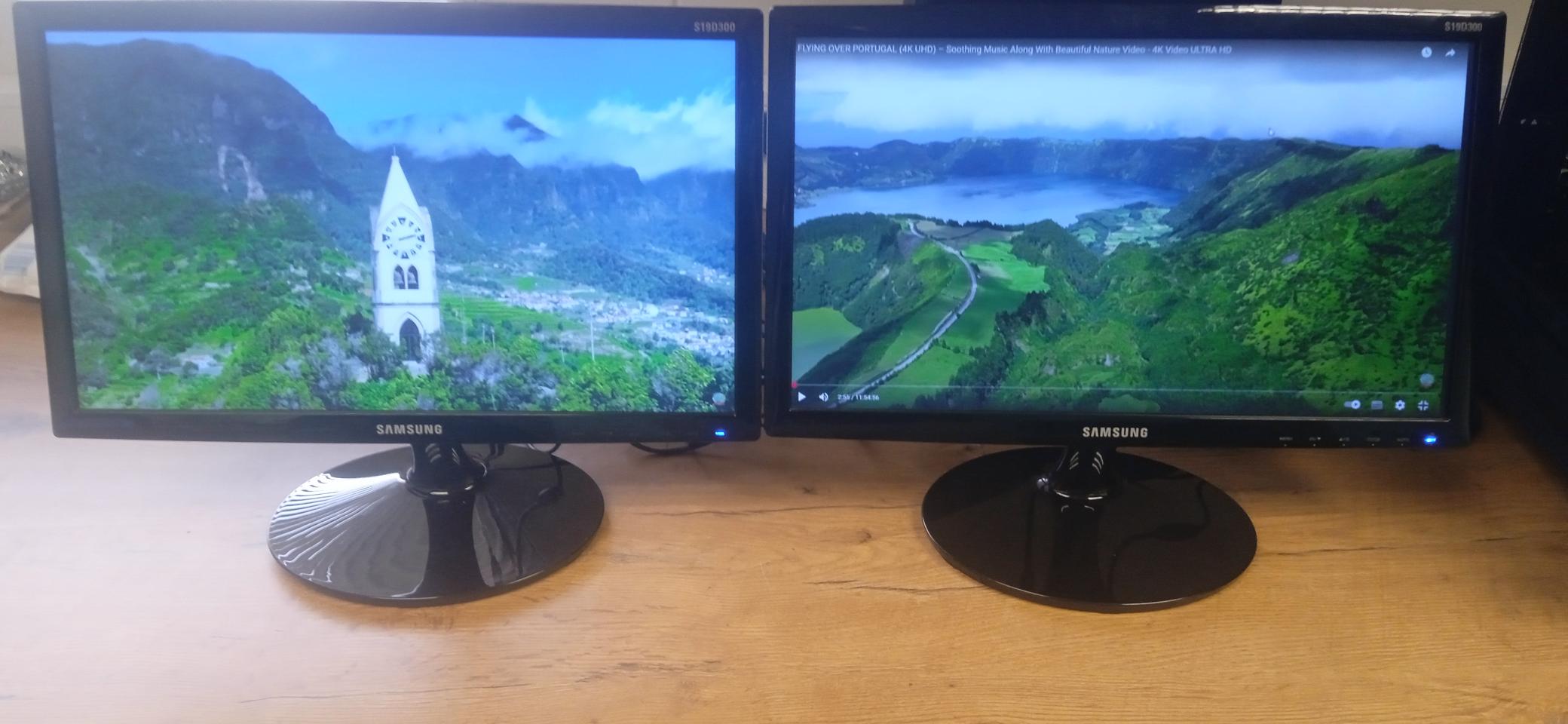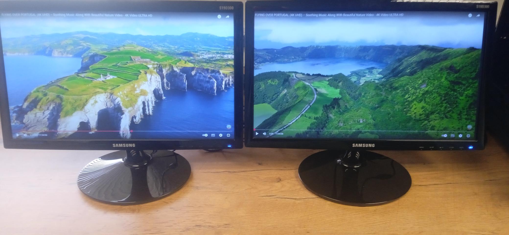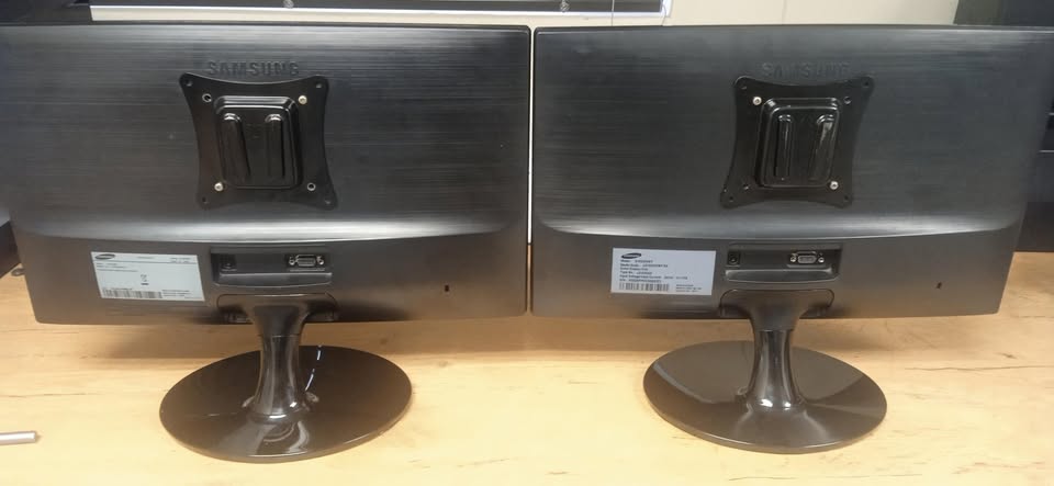Some surface scuffs and faint scratches on the stand bezel and the back but the screen panels are fine. If there are marks on the screen it is barely visible when the screens are off and not noticeable when the screens are turned on. They both have vesa mount brackets on the back