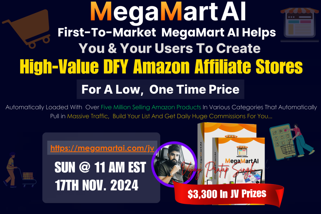 Introducing: Brand new AI powered app auto creates a high value fully functional Amazon affiliate Online Store in just 60 seconds! No Shopify | No WooCommerce | No Website Registration Or Hosting | 100% Cloud Based. Automatically Loaded With 5 Million Best Selling Amazon Products In Various Categories That Automatically Pull in Massive Traffic, Build Your List And Get Daily Huge Commissions For You. Amazon isn't just the world's largest online retailer; it's also a goldmine for people that are looking to make money online fast. Amazon stands out as the best affiliate platform in the world and all you need to tap from their huge goldmine and bank big is to Integrate Artificial Intelligence. And that is exactly what we have done with MegaMart AI. With MegaMart AI you can create a profit pulling online amazon affiliate store that will help you live a life of freedom and success, as you effortlessly generate passive income from the comfort of your home and your mobile device. One Of The Easiest And Fastest Way To Make Money In 2024!