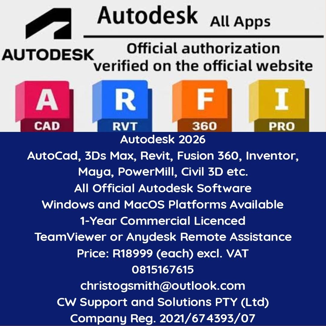 AutoCad, 3Ds Max, Revit, Fusion 360, Inventor, Maya, PowerMill, Civil 3D etc.