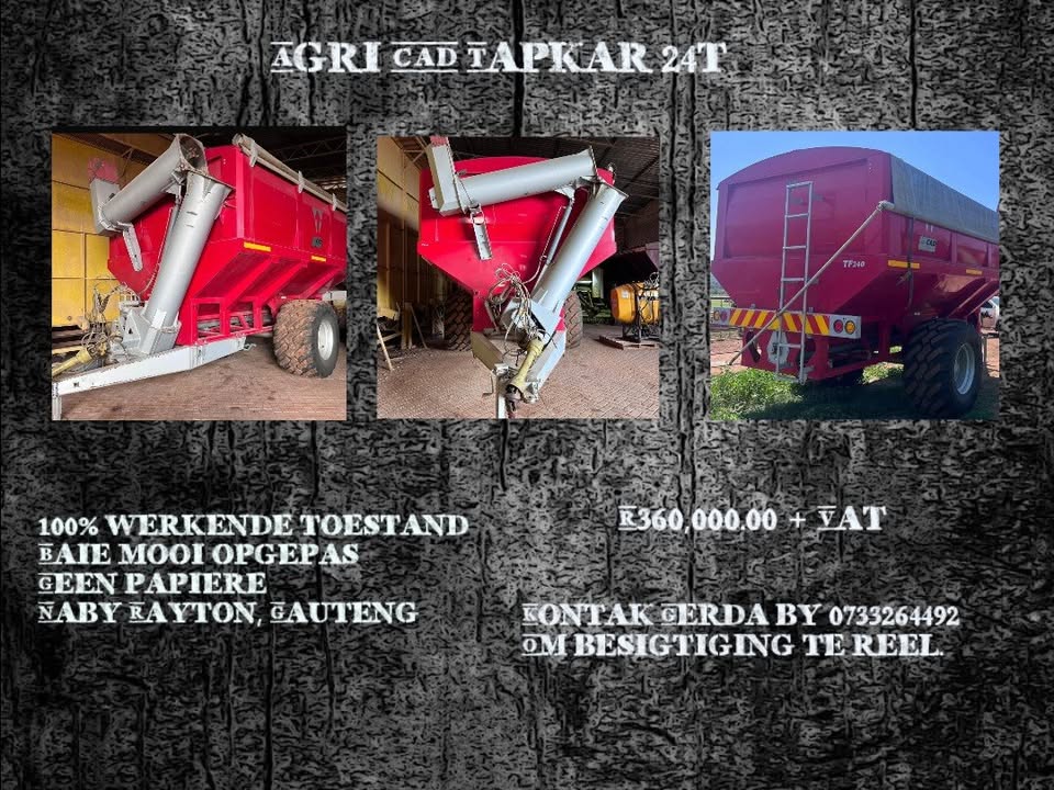 24T Tapkat, Agri CAD, baie mooi opgepas, werk 100%. Kontak Gerda 0733264492view more vir besigteging. Staan naby Rayton Gauteng. R360000 + BTW