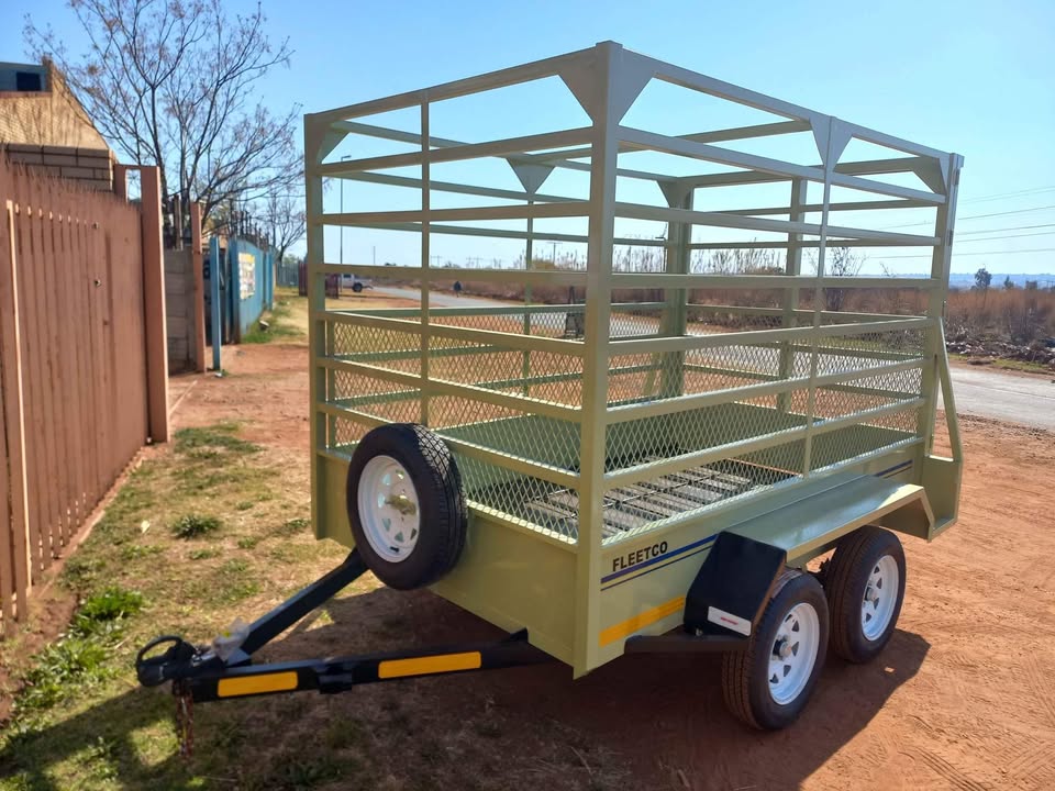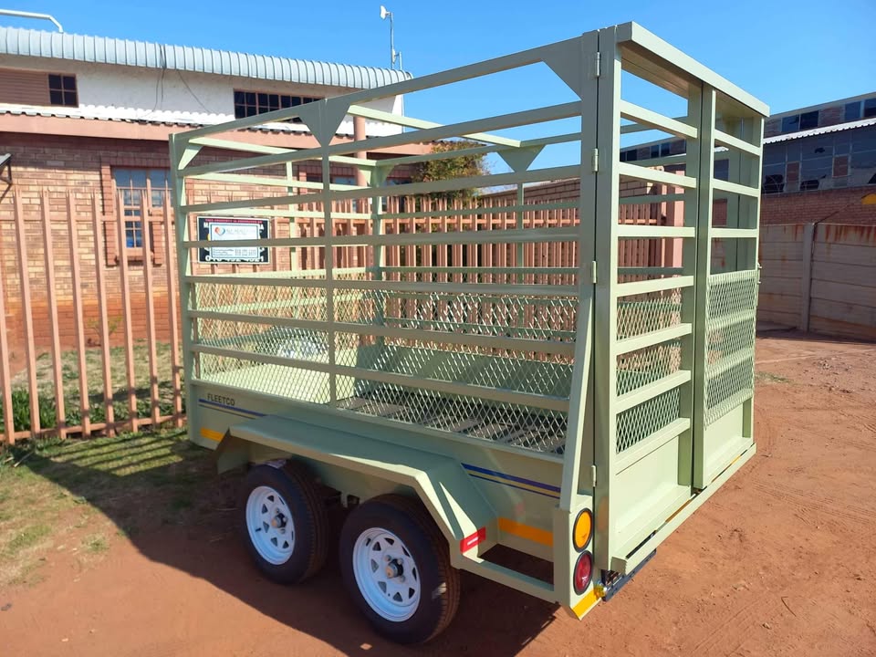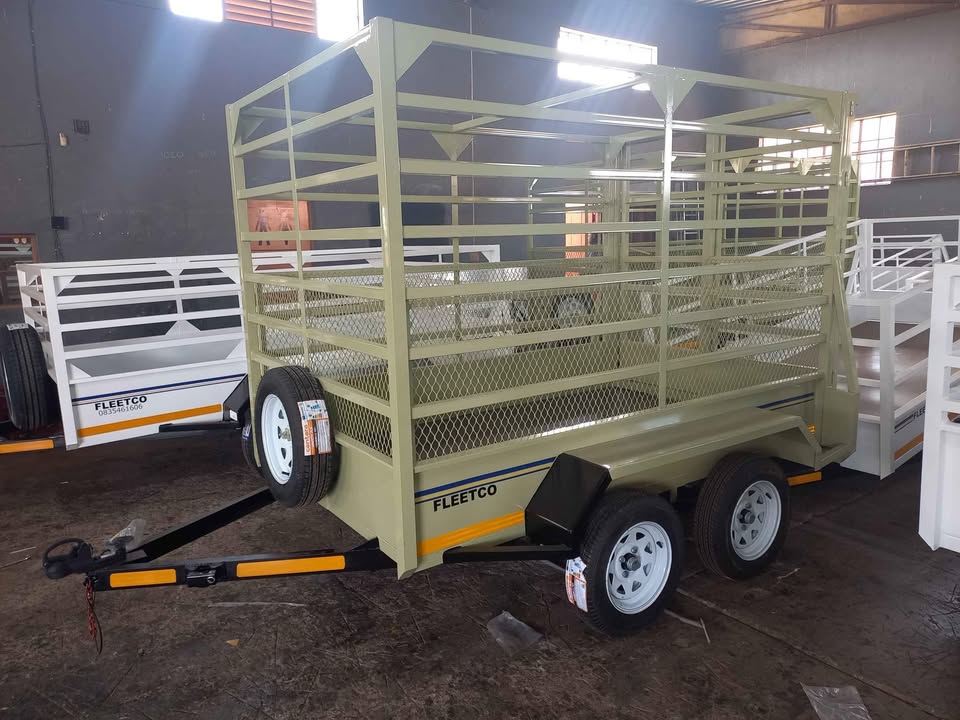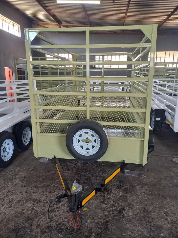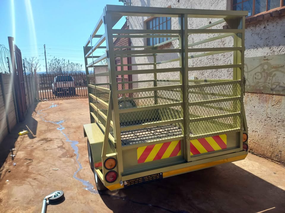 Contact Jeunice Grobler to place an order 068 332 3203view more whatsapp is welcome for the pin location of the factory, located in Westonaria. We are SABS approved. 2.450m x 1.5m x 1.750m double axle unbraked cattle trailers built brand new with 13" wheels plus spare wheel, jockey wheel, removable floor grid, sliding gate at the back and the whole gate opens, led lights, steel disc holder and universal lock. Color option of white or khaki for the same price. All our prices include vat, ID dot, papers and already through the test.