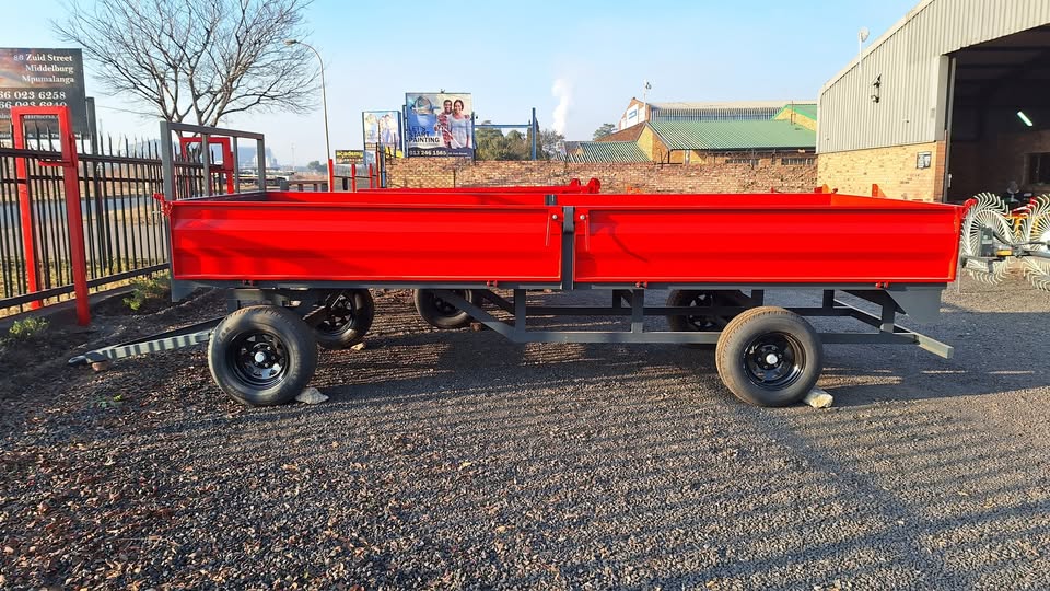 Range of high quality drop side farm trailers. Double axle models 4.2 ton , 6 ton and 8 ton. Manufactured in RSA. 12 month warranty Full spares and aftersales service Finance options available T's and C's apply Delivery and export available Mad Farmer SA 86 Zuid st,Vaalbank,Middelburg,MP info@madfarmersa.co.zaview email... Kobus 066 023 6240view more