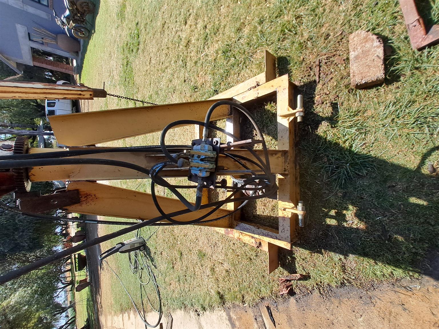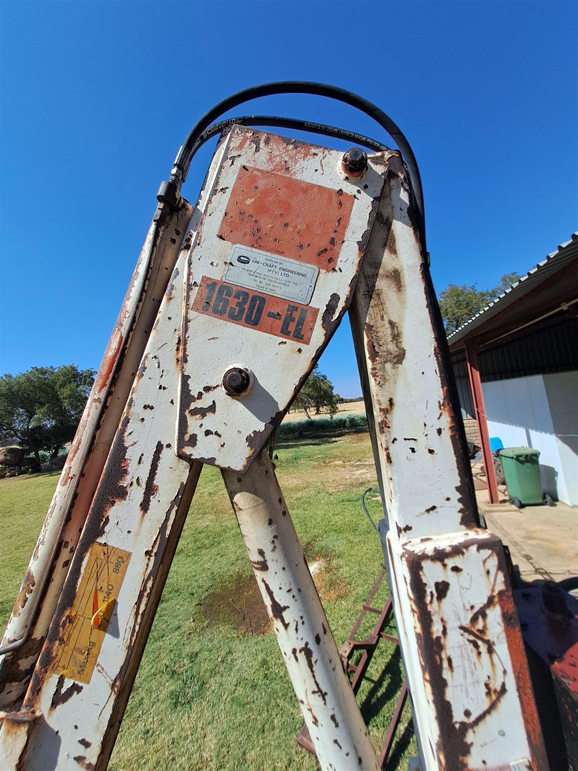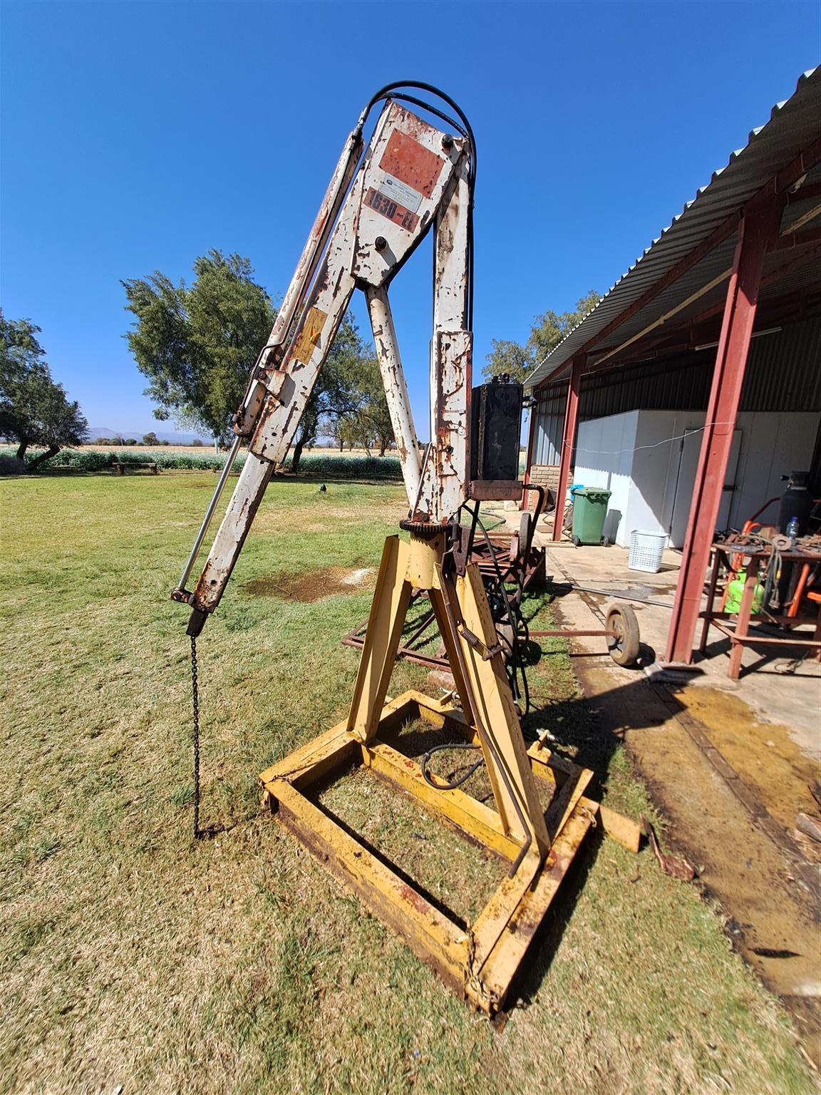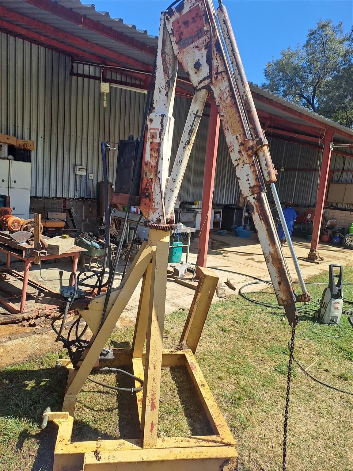 Hydraulic lift can be mounted on truck or back of tractor tripod. 1630 kg. Controlls for in out and up down