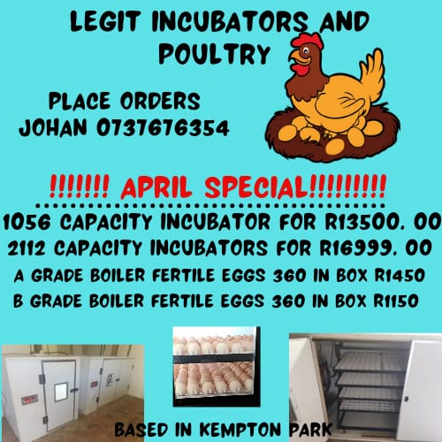 1056 capacity incubator for special price R13500. 00