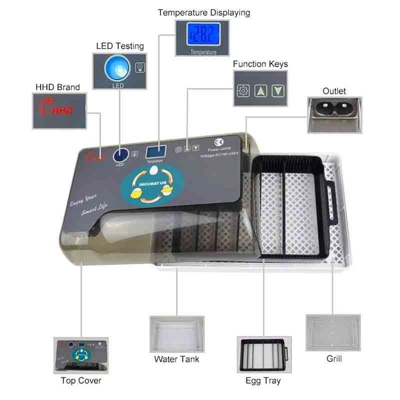 Digital egg incubator is integrated designed and made of brand new ABS material, high quality and durable. With multiple functions of LED light, auto temperature control, low loise and so on, the hatcher is widely used for hatching eggs of chicken, duck, pigeon and quail.