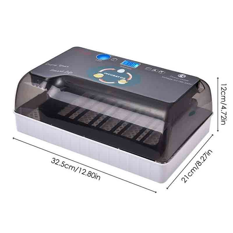 Features: Integrated Design & High Quality MaterialIntegrated egg incubator, semi-transparent upper lid for conveniently checking the hatching conditions. Brand new ABS material, high quality and eco-friendly, durable to use. LED Light & Constant TemperatureBuilt in LED light for observing the growth of the fertilized eggs. Built in turbo fans with low noise, circulates air for evenly distribute the inner temperature. Touch Buttons & Auto Temperature ControlTouch buttons for easy operation, displays temperature and humidity, hidden USB port for safety. Auto temperature control and display the current temperature. Stable Temperature & Wide ApplicationAdopts ceramic hair hot wire for more stable and correct temperature. Poultry hatcher for hatching chicken eggs, duck eggs, pigeon eggs, quail eggs. Sponge & Blister ChassisProvides sponge to prevent water overflow and affect the hatching process. Blister classis can be easily bring out all the dirt for conveniently cleaning. Poly Foam IncludedComes with poly foam, protects the egg hatcher when in transit and provides an extra heat preservation when hatching eggs.