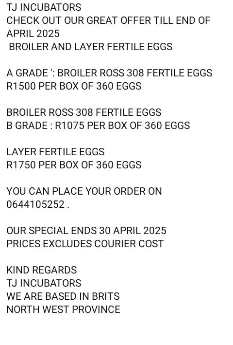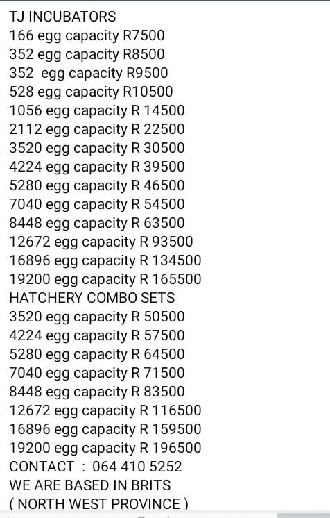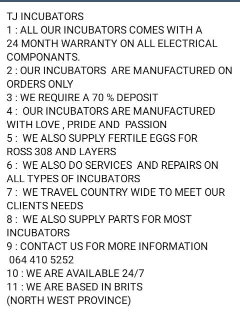 Fully automated egg incubators are fertile eggs