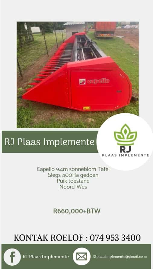 Capello 9.4m Sonneblom Tafel Slegs 400Ha gedoen Puik Toestand Noord-Wes R660 000 + BTW KONTAK ROELOF :