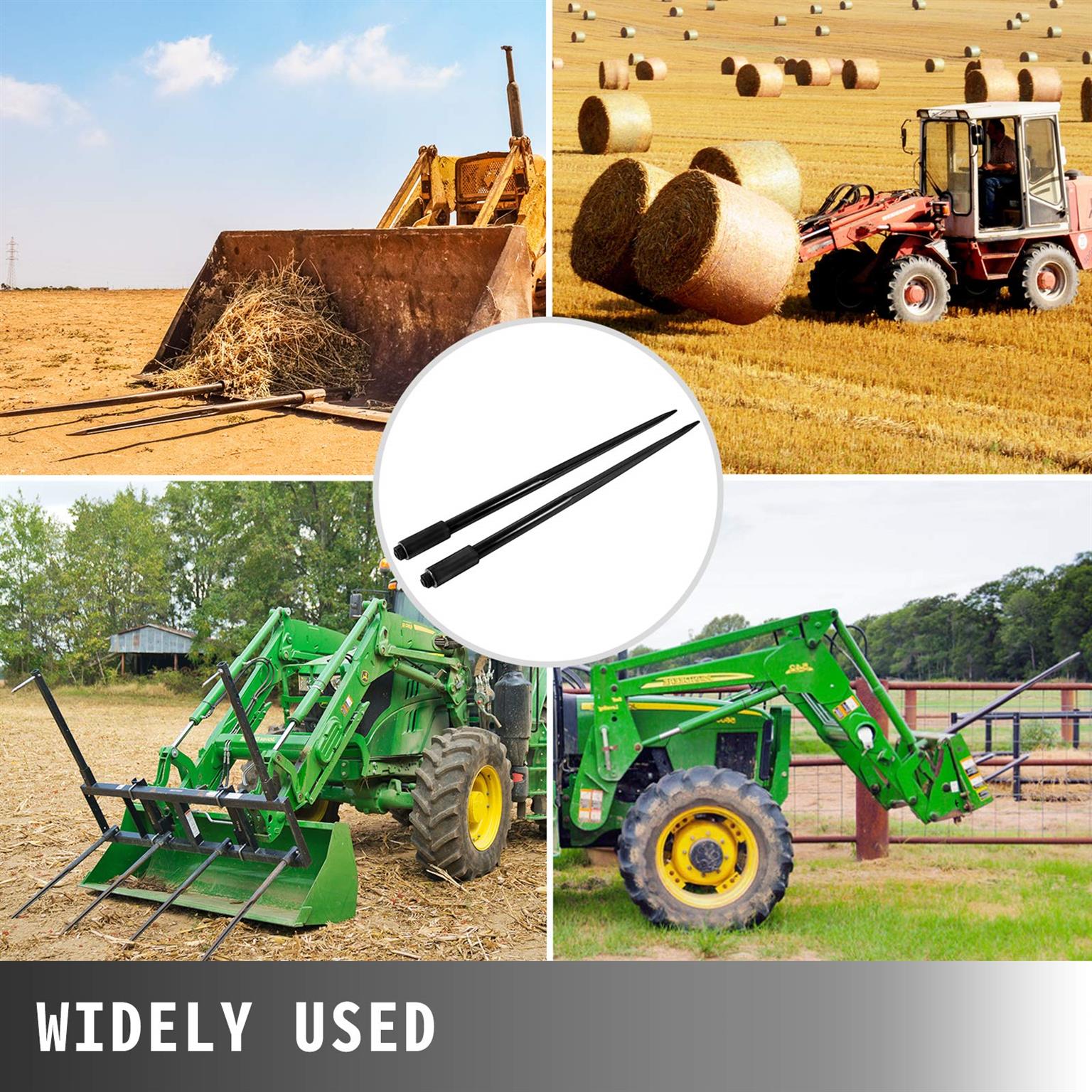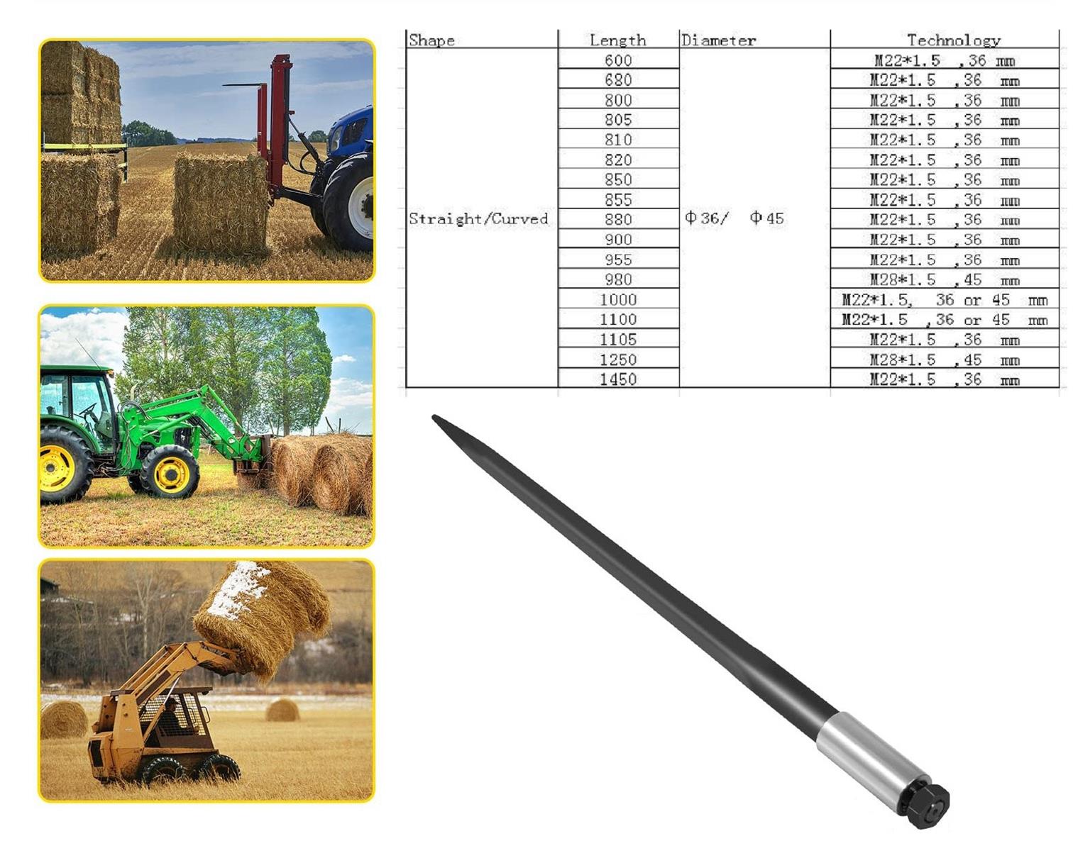 Bale Spike Quick Attach Square Hay Bale Spears 1 3/4", Bale Hay Spike with Hex Nut and Sleeve for Buckets Tractors Loaders