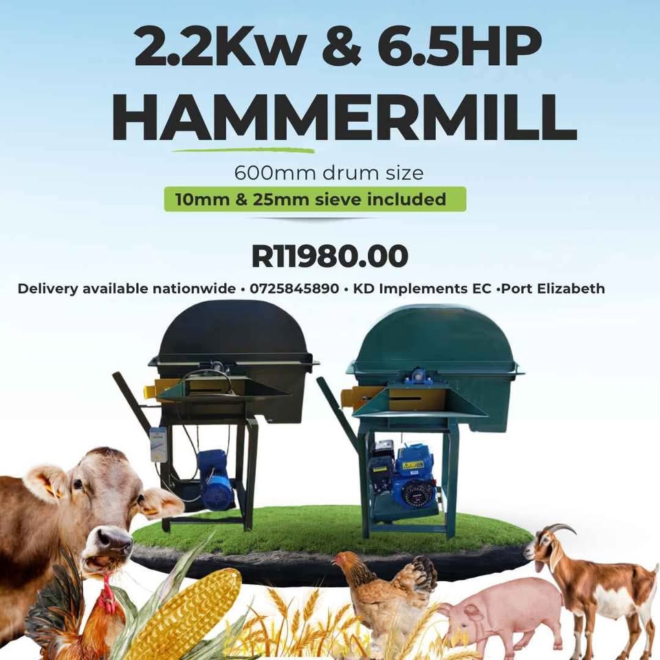 🚜 South African Hammer Mill – Only R11,980.00 Cut your feed costs and recycle farm materials with ease! Built tough for farmers, our 600 mm drum system delivers consistent particle size – perfect for animal feed, silage, or compost. ✨ What You Can Grind: 🌱 Grass bales – Reduce spoilage & stretch your roughage. 🍞 Bread – Turn waste bread into affordable feed. 🌾 Seeds & grains – Mix your own balanced rations. 🌿 Lucerne & soya – Perfect protein & energy blend. 💩 Manure – Speed up composting with fine grinding. 🍂 Leaves, shrubs & garden waste – Uniform compost material. 🌽 Whole or cob maize (wet or dry) – Ideal for silage production. ✅ Plus many more organic materials! 🛠 Included & Options: ✔️ 600 mm drum system ✔️ 10 mm & 25 mm sieves (5 mm optional) ✔️ Electric or petrol power options ✔️ Optional wheelset for easy mobility 📍 Proudly manufactured in Port Elizabeth 📞 Call/WhatsApp Today: 💡 Affordable • Reliable • Built for Farmers