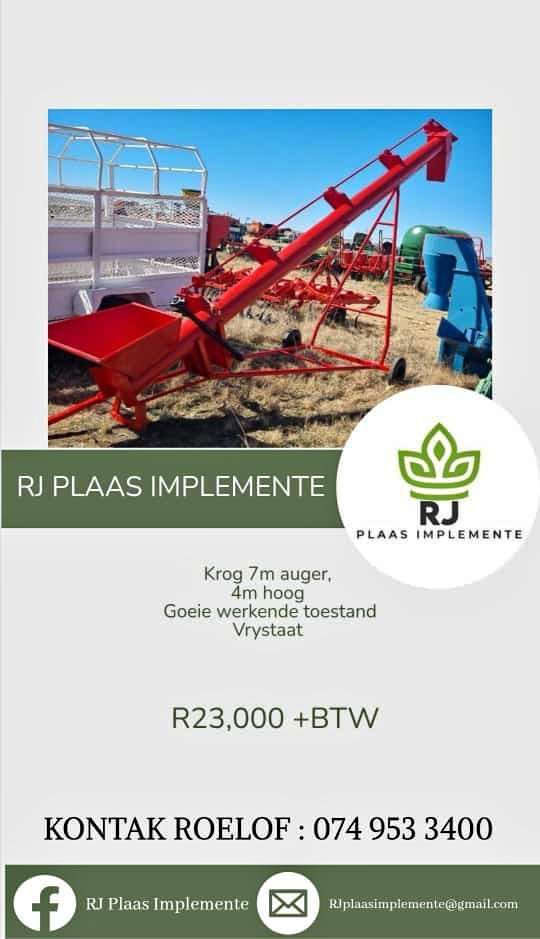 Krog 7m Auger 4m Hoog Goeie werkende toestand Vrystaat R23 000 + BTW KONTAK ROELOF :