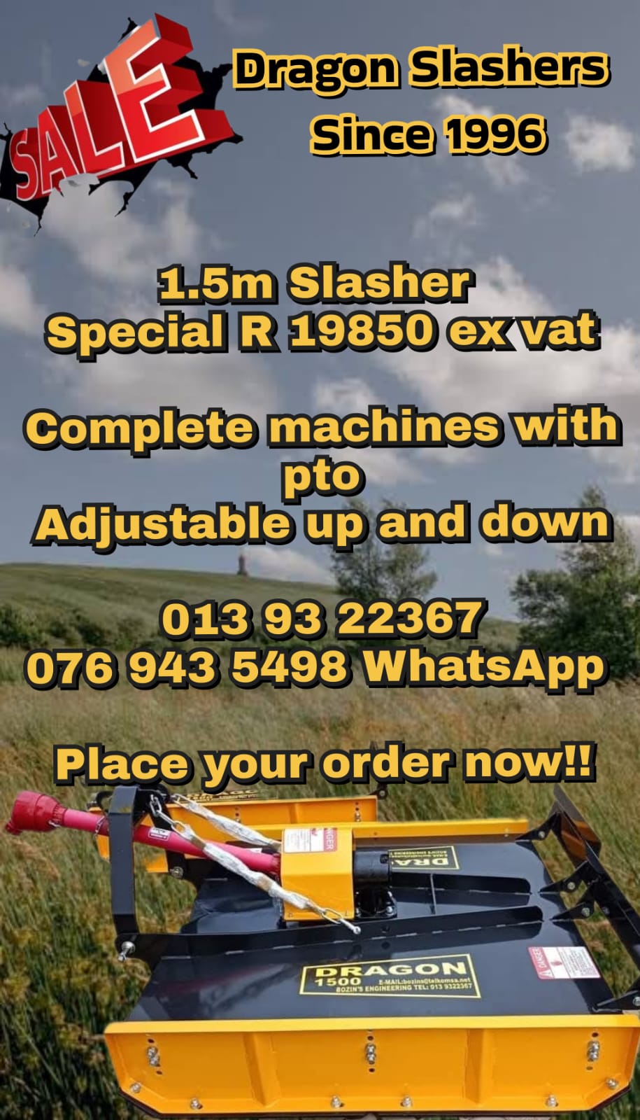 1.5m Dragon Slashers now on special with pto adjustable up and down
