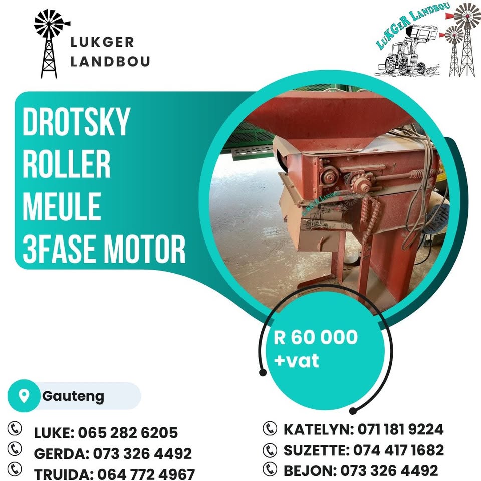 Drontsky roller meule, 3 fase motor, R60000.00 + vat. Gauteng, Kontak Gerda 0733264492view more