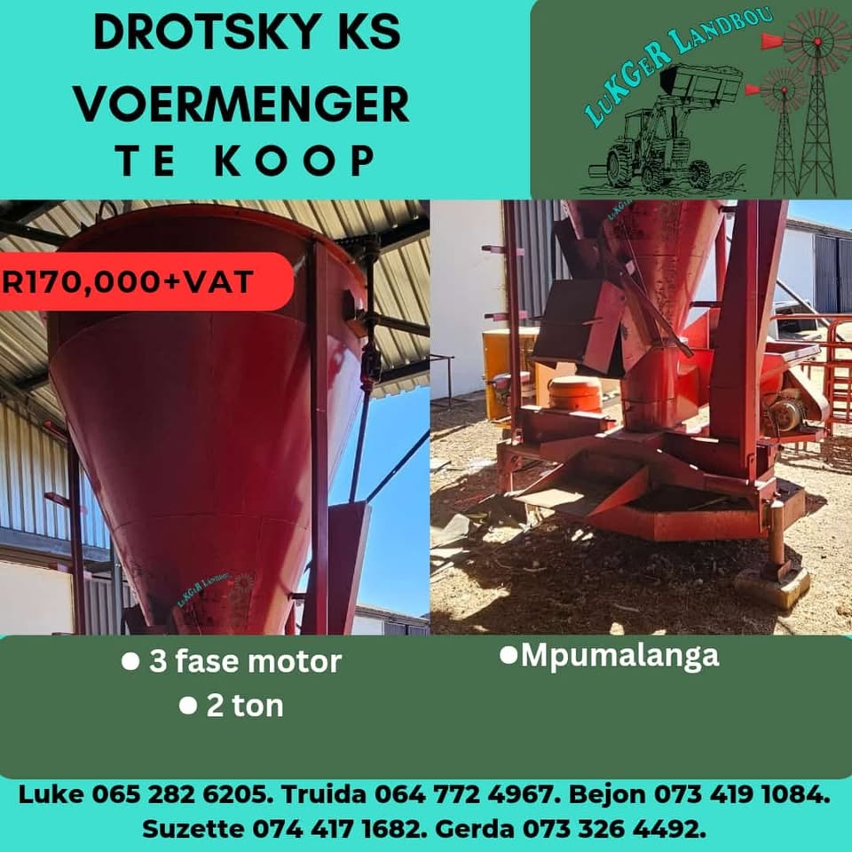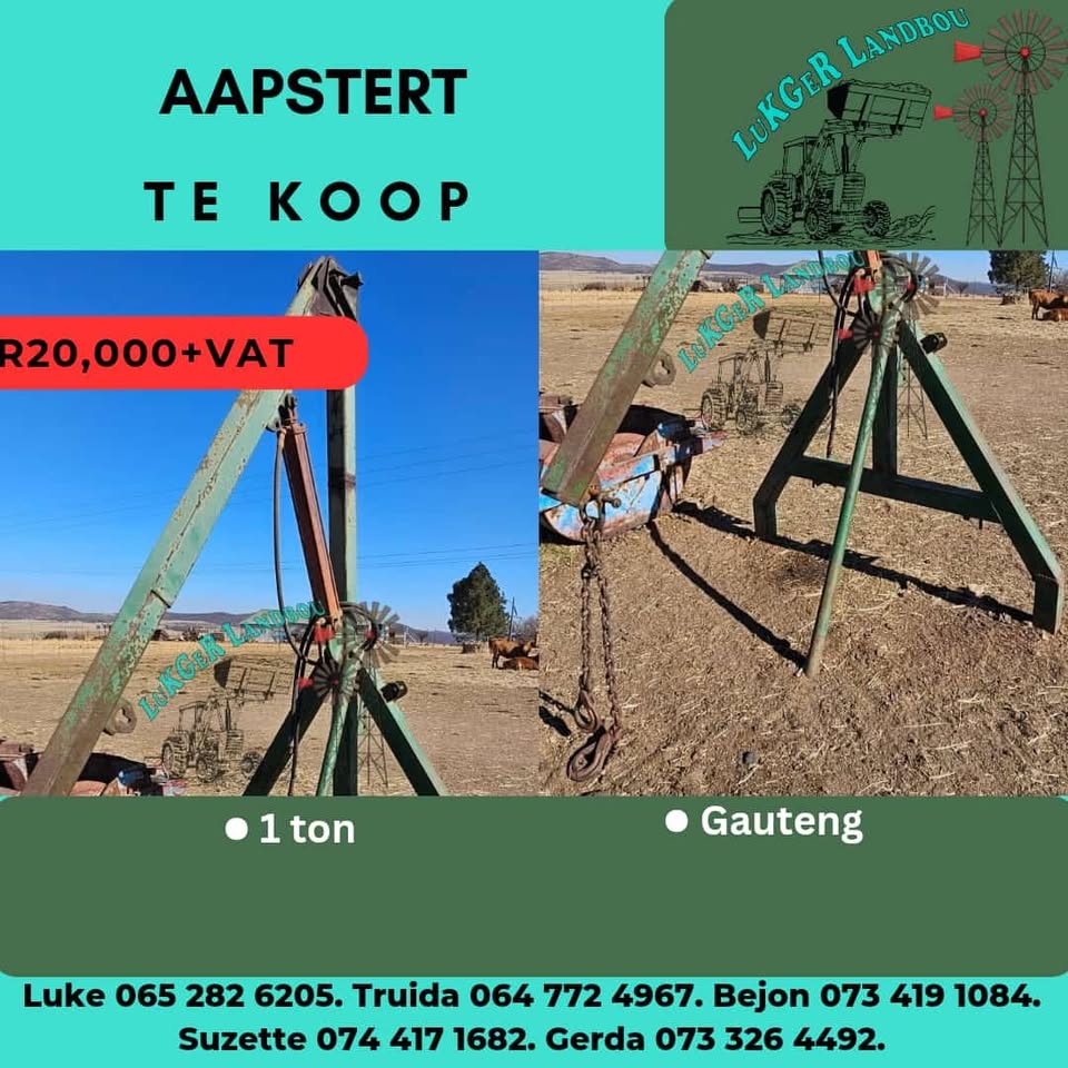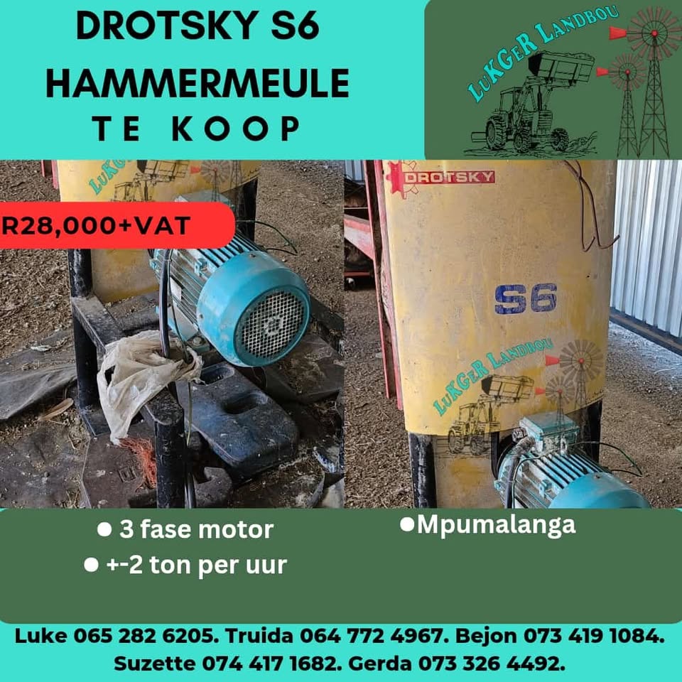 Landbou toerusting beskikbaar. Hammer meule, voermenger, aapster, vetsak ripper. Alles twedehands maar in goeie werkende toestand. Kontak Gerda 0733264492view more