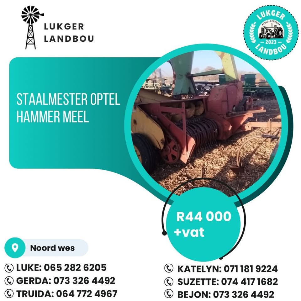 Staalmeester optel hammer meul, R44000.00 + vat. Noord wes, Kontak Gerda 0733264492view more