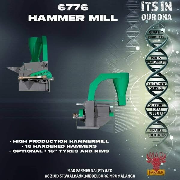 New SM 6776 Hammer Mills Available For Sale At Mad Farmer SA Zuid Street Middelburg Mpumalanga For All Your Farming Needs - 3 Point And PTO Driven - - Wheels And PTO Driven - - 37kW Electric Motor - - 16 Hardened Hammers - - 16 " Tyres And Rims - ** Warranties On All Our Equipment ** ** Full Parts And After Sales Service ** ** ** ** **