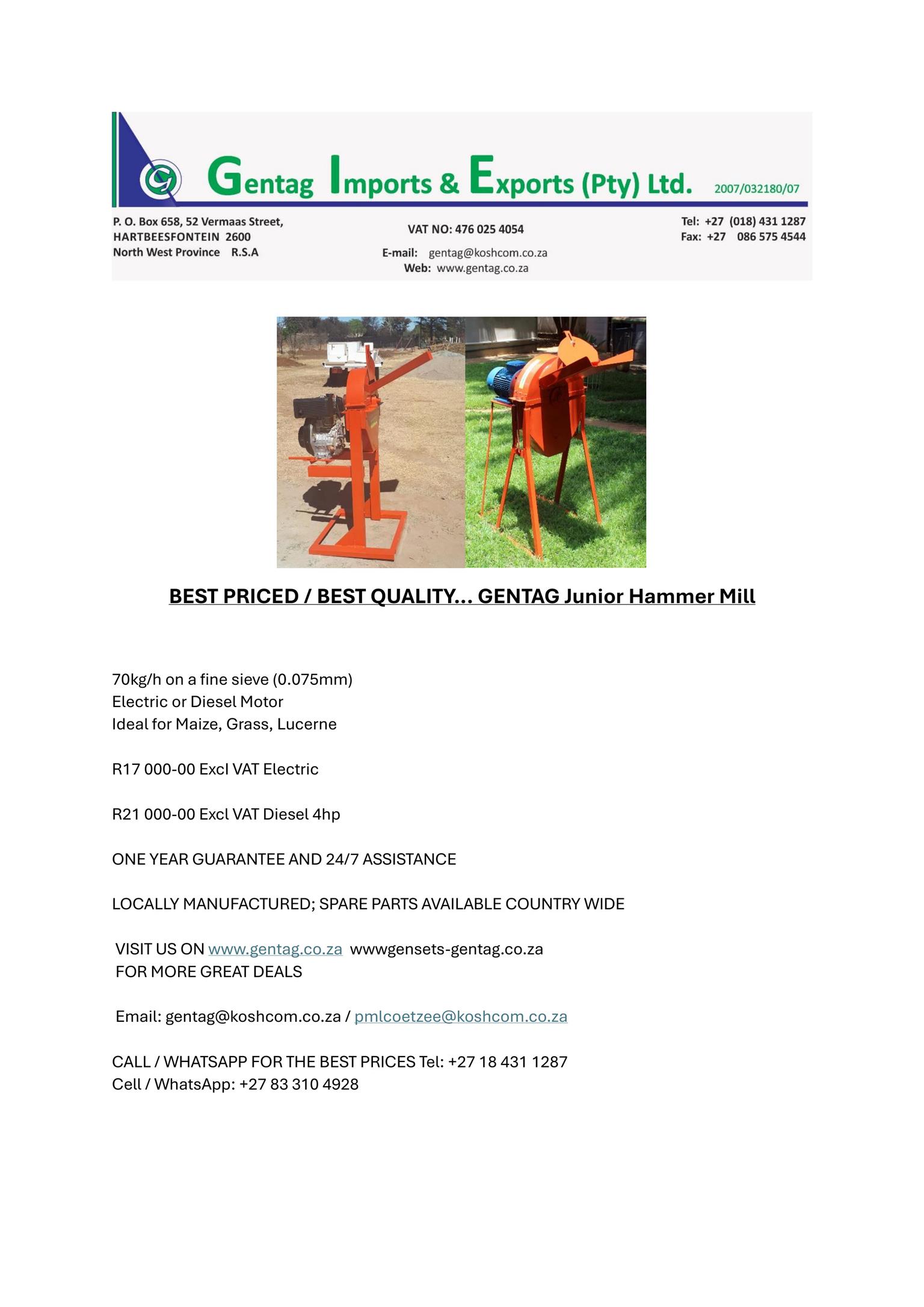 VISIT US ON www.gentag.co.za wwwgensets-gentag.co.za