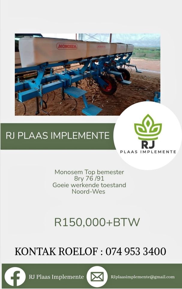 Monosem Top Bemester 8ry 76/91 Goeie werkende toestand Noord-wes R150 000 + BTW KONTAK ROELOF :