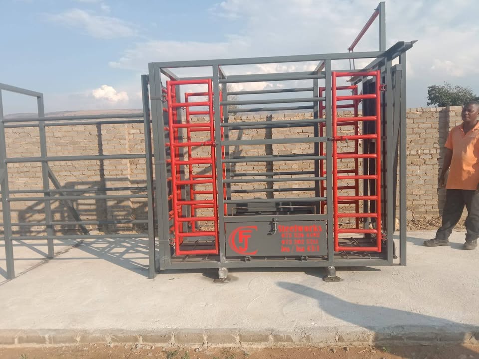 FJC Staalwerke, ons vervaardig hierdie standaard bees weegkratte, sluit in, 1 x nekklamp, 1 x skuifhek, hanterings hekkies aan beide kante, 1 x standaard monitor met weegbalke. Krat kan aangepas word volgens die ras beeste wat jy het. Van Dexter to Chianina. Ons is gelee op die Rhenosterfontein pad in die Donkerhoek area, 22km van Pretoria af. Kwaliteit werkmanskap gewaarborg. Kontak ons gerus vir 'n kwotasie.
