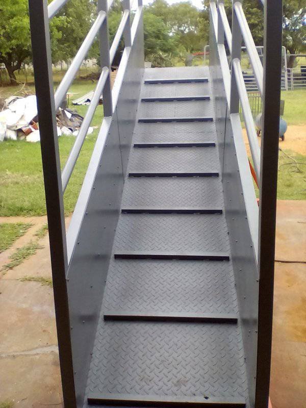 FJC Staalwerke, ons vervaardig laaibanke vir beeste en skape, semi verskuifbaar en permanente strukture. Met of sonder 'n katrol. Laaibanke is sterk en stewig. Kan op sleepwa vervoer word en 'n bietjie mannekrag kan hom klein entjies skuif. Kwaliteit werkmanskap gewaarborg. Ons is gelee op die Rhenosterfontein pad in die Cullinan/Donkerhoek distrik. Kontak ons gerus vir 'n kwotasie. 0.7.3.3.2.6.4.4.9.2