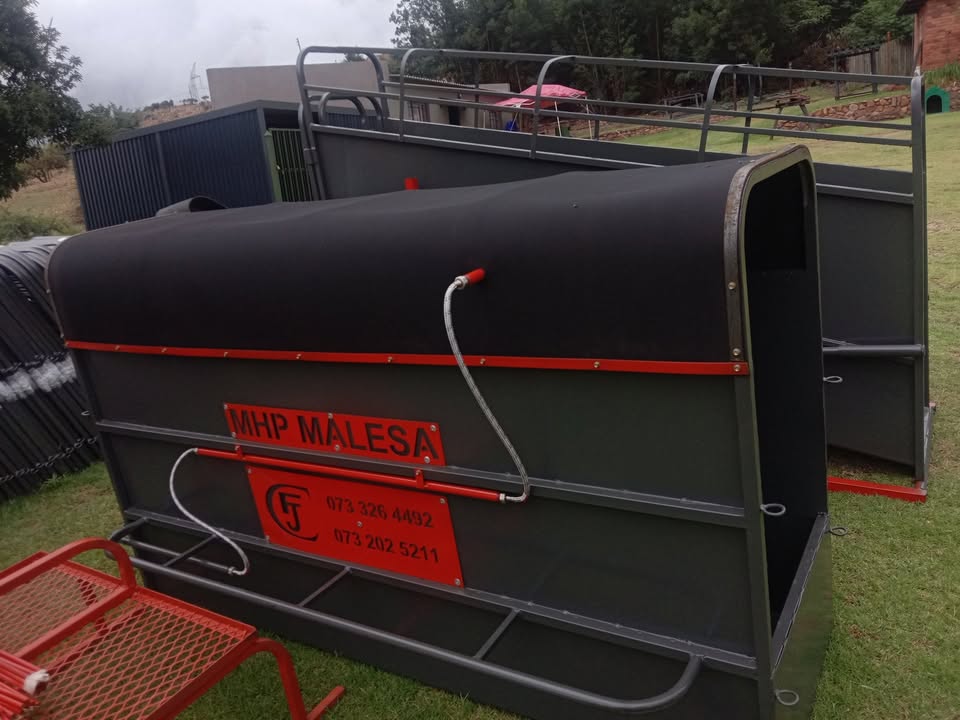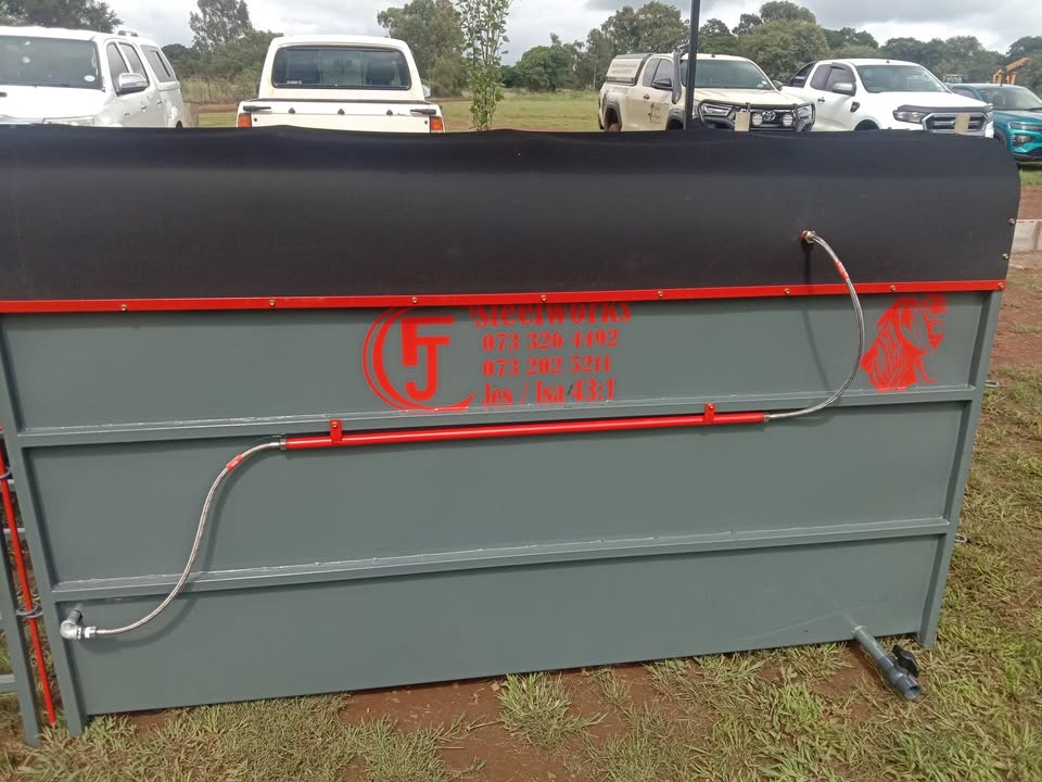 FJC Staalwerke, ons vervaardig hierdie spray dips vir skape/bokke en beeste. Elke dip het sy eie reservoir op die vloer waarin onderskeidelik 350 en 600L vloeistof gemeng kan word. Die vloeistof word weer opgevang deur die toe kante en kan soodoende help om te bespaar op die dip mengsel. Die dips het onderskeidelik 6 tot 12 v-jet nozzles in wat 'n wye area op die dier dek. Elke dip kom met sy eie booster pomp wat die grootte van die dip akkomodeer. Dips is semiverskuifbaar, kan op 'n sleepwa of bakkie gelaai word om te gebruik waar jy dit nodig het. Kwaliteit werkmanskap gewaarborg. Ons is gelee op die Rhenosterfontein pad in die Cullinan/Donkerhoek distrik. Kontak ons gerus vir 'n kwotasie. 0733264492view more