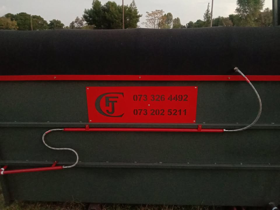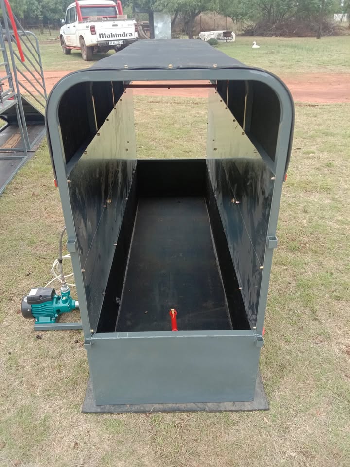 FJC Staalwerke, ons vervaardig hierdie spray dips vir skape/bokke en beeste. Elke dip het sy eie reservoir op die vloer waarin onderskeidelik 350 en 600L vloeistof gemeng kan word. Die vloeistof word weer opgevang deur die toe kante en kan soodoende help om te bespaar op die dip mengsel. Die dips het onderskeidelik 6 tot 12 v-jet nozzles in wat 'n wye area op die dier dek. Elke dip kom met sy eie booster pomp wat die grootte van die dip akkomodeer. Dips is semiverskuifbaar, kan op 'n sleepwa of bakkie gelaai word om te gebruik waar jy dit nodig het. Kwaliteit werkmanskap gewaarborg. Ons is gelee op die Rhenosterfontein pad in die Cullinan/Donkerhoek distrik. Kontak ons gerus vir 'n kwotasie. 0733264492view more
