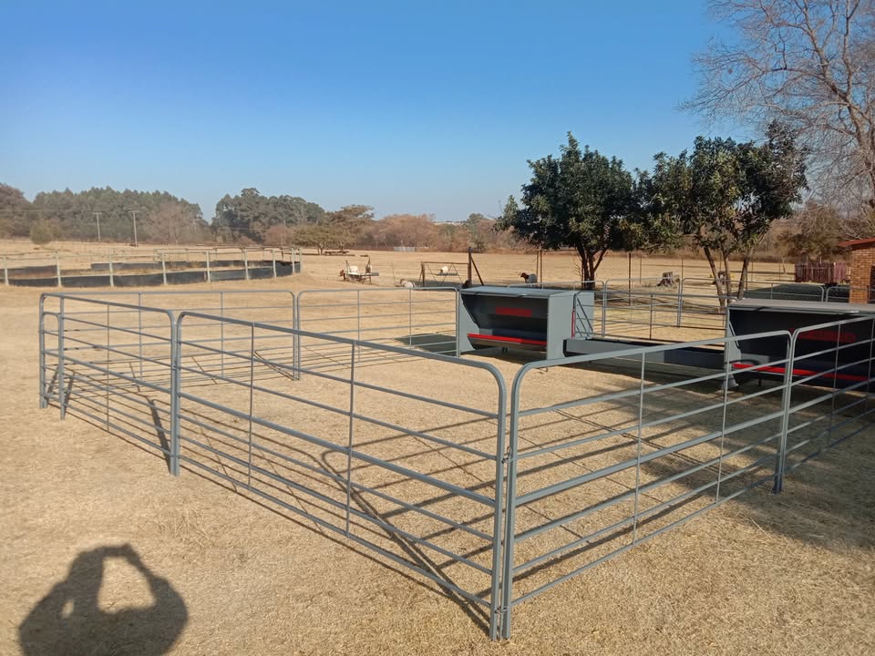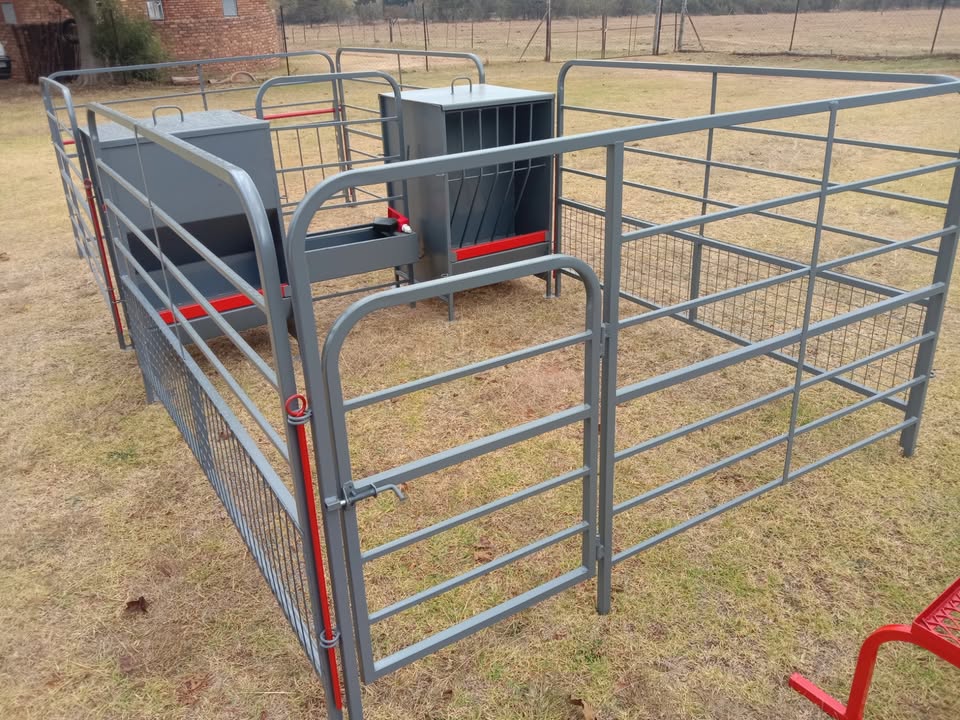 In ons kombinasie voer pakette bied FJC Staalwerke die skaap/bok boere die geleentheid om spasie te benut en voer en water beperkinge te verbeter. Hierdie kombinasie voerders is 'n innoverende oplossing om kleiner hoeveelhede diere te bedien met alles wat hulle nodig het in een kampie. Vir jou siekeboeg/kwarentyn kampies en vir ooie met meerlinge bied dit 'n ideale kampie waar jou diere sonder stres en moeite hulle tyd kan deerbring totdat hulle weer by die trop kan aansluit. Hierdie kampies kan natuurlik aangepas word met verskillende panele. Van standaard panele vir volwasse diere, tot panele met welded mesh op vir jou lammers, en ook kan 'n kruip paneel geinstalleer word indien jy dit 'n kruip voer kampie wil maak. Panele kan bygevoeg word om die kamp groter te maak. Die hele sisteem kan met gemak rondgeskuif word met elke komponent wat kan afslaan en verskuif word. Groter Self voerders kan gebruik word, en langer water trogte kan gemaak word om lekker groot kampe te maak dalk vir jou dragtige ooie op die punt van lam, of jong ooie wat geskei moet word, of jong ramme wat uitkeer word. Die gebruike is eindeloos. Gerda 0.7.3.3.2.6.4.4.9.2. Kontak ons gerus vir 'n kwotasie. Ons is gelee in die Donkerhoek area naby Pretoria. Kwaliteit werkmanskap gewaarborg.