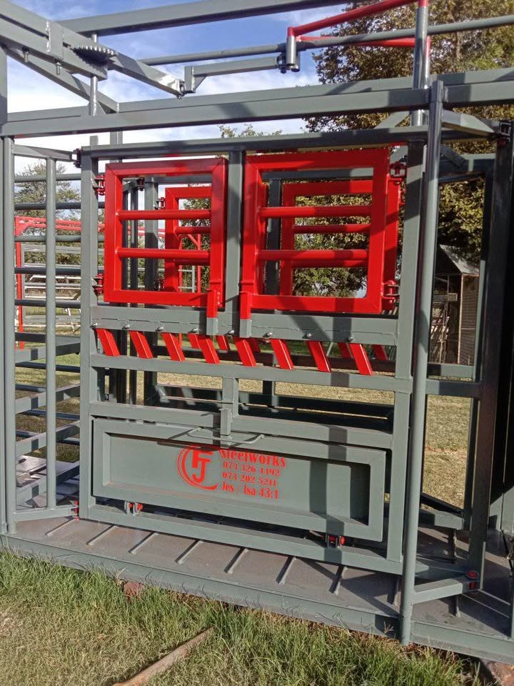 FJC Staalwerke, ons vervaardig hierdie bees weeg/werk krat met nekklamp, lyfklamp, hanterings hekkies, skuif hek, veearts boks en LS4 wifi skaal monitor en laai selle. Lyfklamp handvatsel kan afhaal om uit die pad uit te wees. Meganisme werk glad en maklik. Kwaliteit werkmanskap gewaarborg. Ons is gelee op die Rhenosterfontein pad in die Cullinan/Donkerhoek distrik. Kontak ons gerus vir 'n kwotasie. [hidden information]