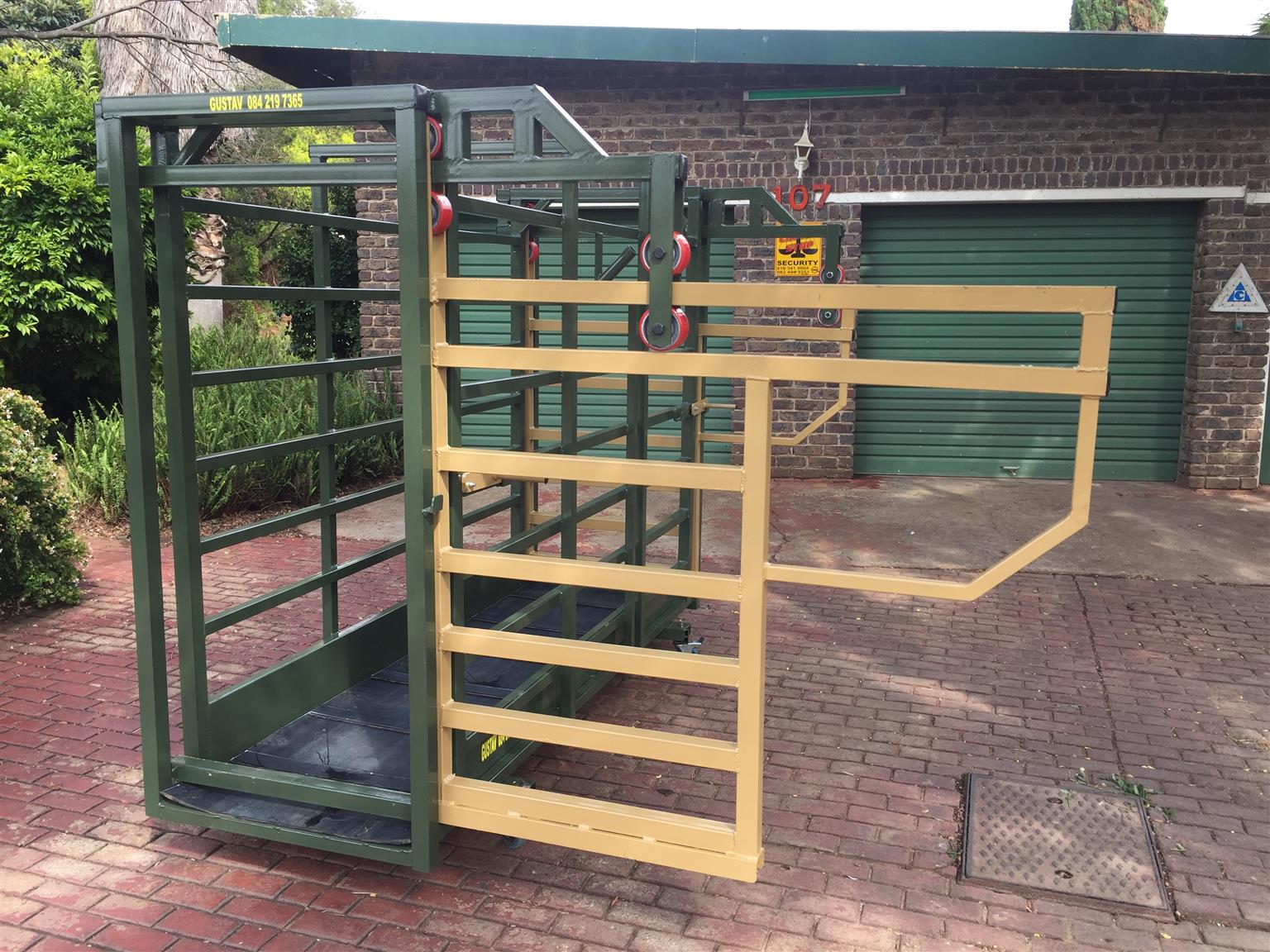 Crate and scale handles any thing from a small lamb to a full grown bull. Weigh from 500 grams up to 2 tons.
