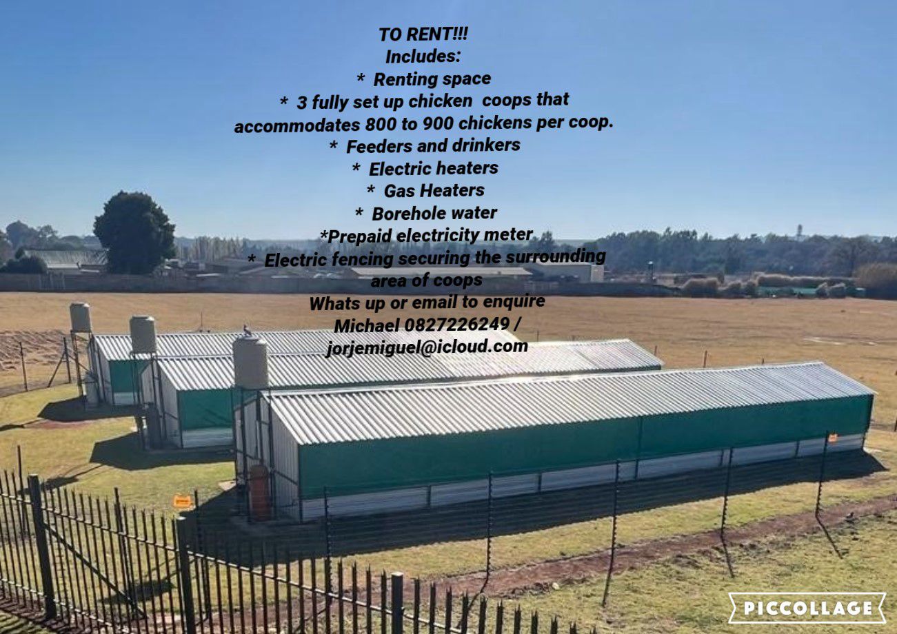 3 fully set up chicken coops that accommodate 800 to 900 chickens per coop