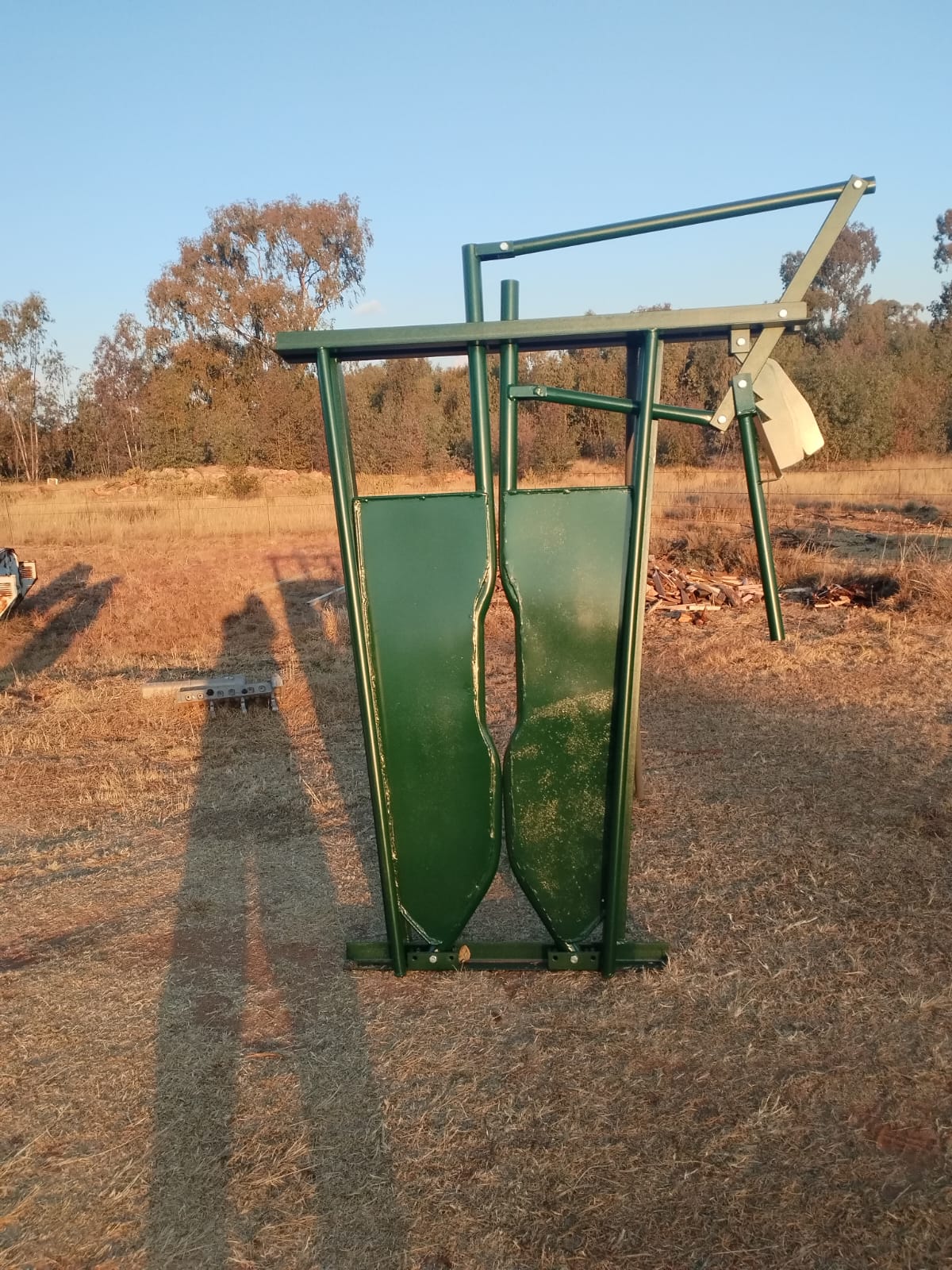 Newly manufactured cattle neck clamp.