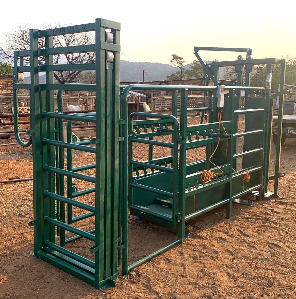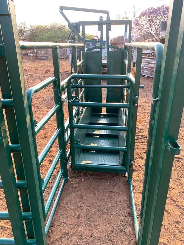 STRUGGLE, STOPS, TODAY! MOBILE CATTLE FIELD WORKSTATION Ideal for rented land and far off camps. Load it on a bakkie and work Fast & Safe. + Safe Work Area behind animal. + Ratchet Bars to Restrain from behind. + Slide Gate- keeps other cattle away from animal being treated. + Side Gates can be used for sorting. + Wide-Opening Neck Clamp with Anchor Plate. Complete Work Station only R23990. (Neck Clamp, Swing Door Side Panels, Slide Gate, Link Pins) Complete Work Station + Weigh Platform + Electronic Scale: only R40990. Items also available separately. Prices ex Vat. Country Wide Delivery Available. Call or Whatsapp Deon for Friendly Advice: 0788001465view more
