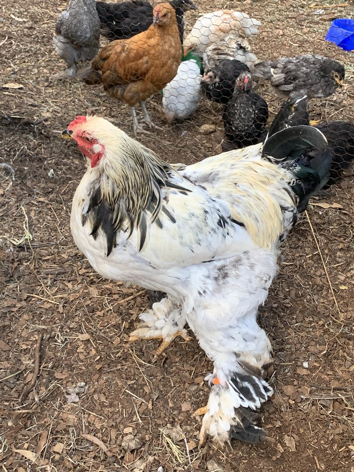 Light Columbian Brahma Rooster. A year old stunning rooster. Beautiful temperament. Blue Light Columbian Hen. About two years old.
