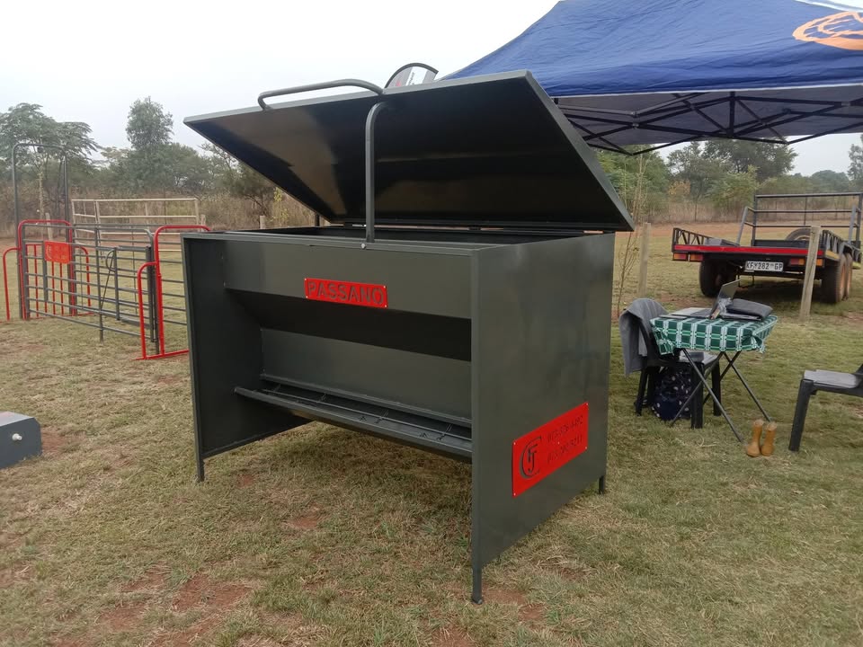 FJC Staalwerke, ons bou hierdie self voerders vir die skape en bokke. Dit werk uitstekend vir pille. Verminder jou tyd spandeer aan voer gee. Maak vol en vergeet van hom. Baie netjies, sterk, ekonomies. Kwalityt werkmanskap gewaarborg. Ons is gelee op die Rhenosterfontein pad in die Cullinan/Donkerhoek distrik. Kontak ons gerus vir 'n kwotasie. 0733264492view more