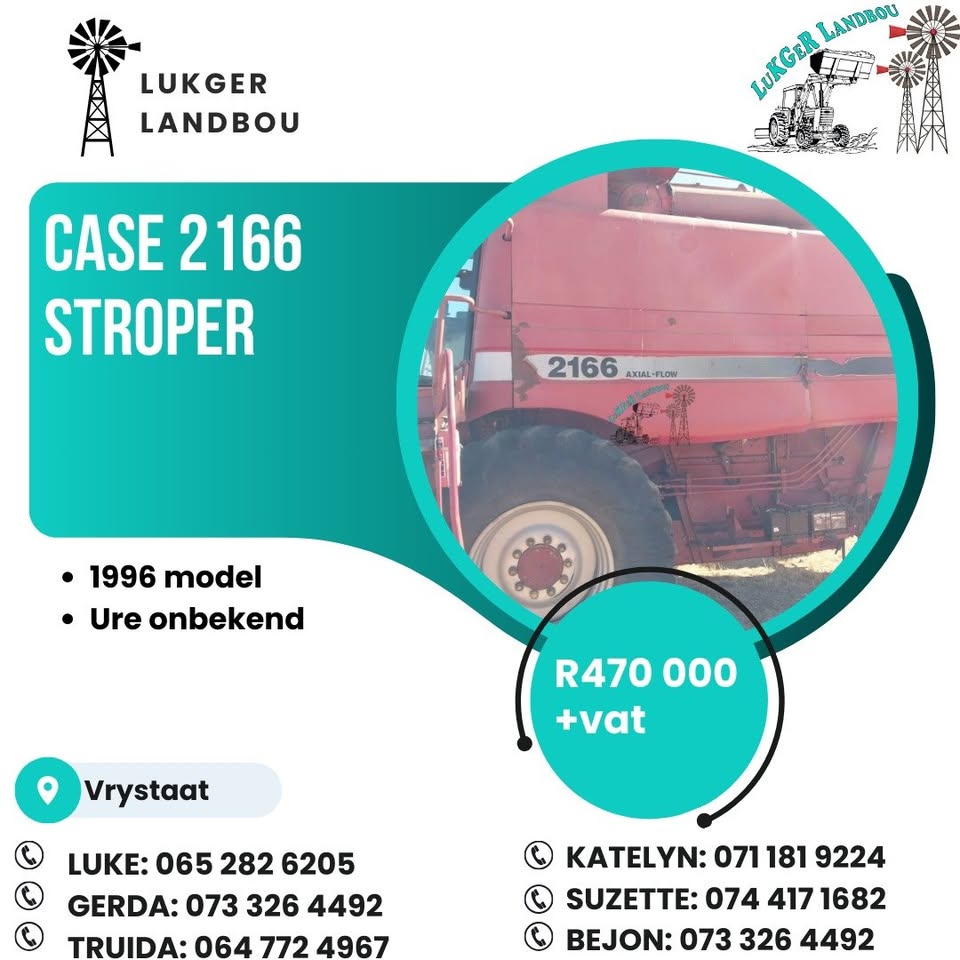 Case 2166 Stroper, 1996 model, ure onbekend. R470000.00 + vat. Vrystaat. Kontak Gerda 0733264492view more