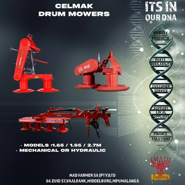 New Celmak Drum Mowers Available For Sale At Mad Farmer SA Zuid Street Middelburg Mpumalanga For All Your Farming Needs Available Models : - 1.65Mtr Mower - - 1.95Mtr Mower - - Mechanical Or Hydraulic - ** Warranties On All Our Equipment ** ** Full Parts And After Sales Service ** ** ** ** Call : ** ** Whatsapp : **