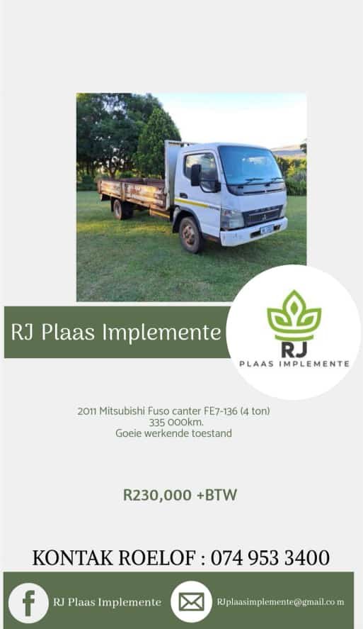 2011 Mitsubishi Fuso canter FE7-136 (4 ton ) Goeie werkende toestand R230 000 + BTW KONTAK ROELOF : 074 953 3400view more